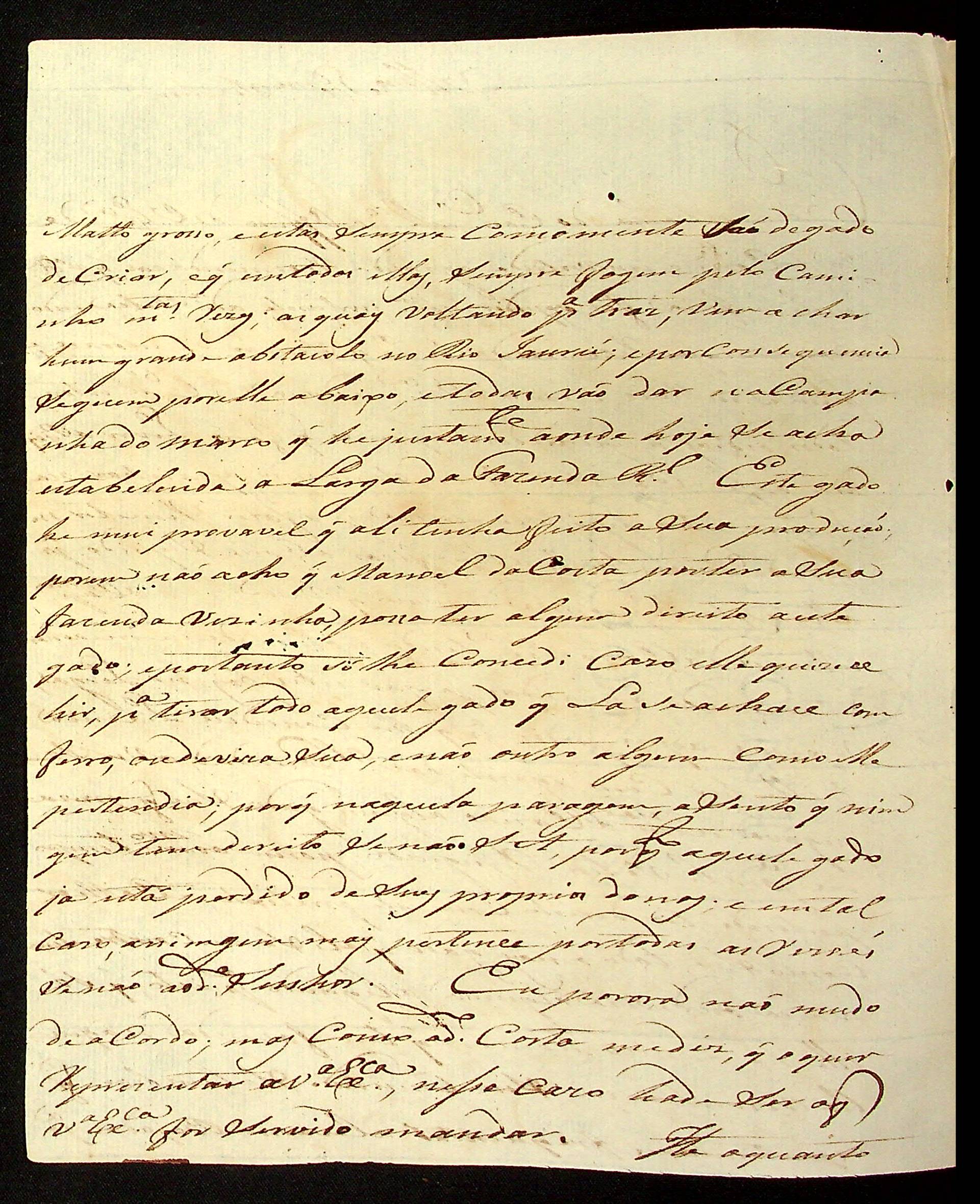 CARTA de João Pereira Leite ao [Governador e Capitão-General da Capitania de Mato Grosso] João Carlos Augusto d’Oeynhausen e Gravenberg.