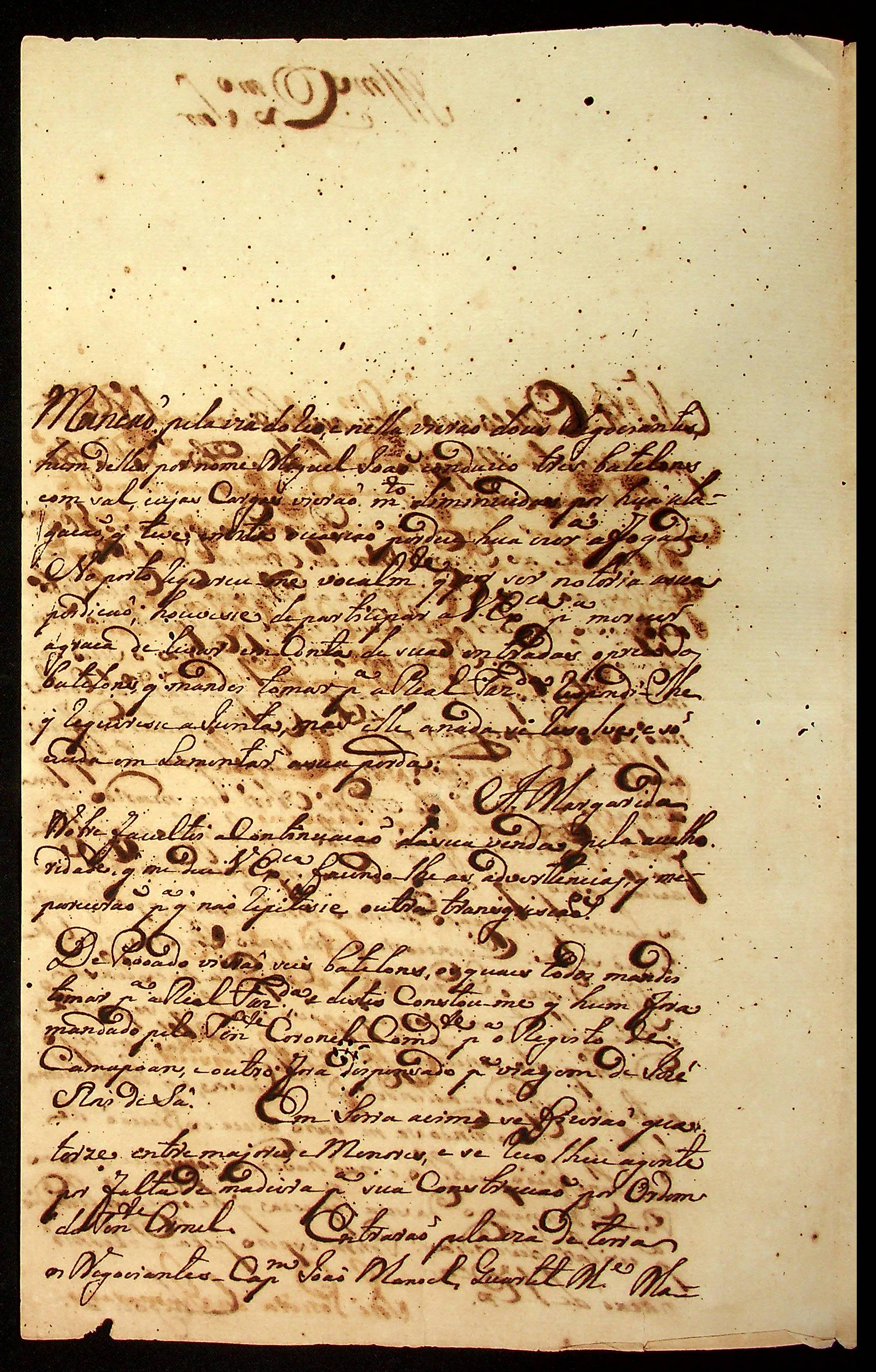 CARTA de José Pereira dos Guimarães ao [Governador e Capitão-General da Capitania de Mato Grosso] João Carlos Augusto d’Oeynhausen e Gravenberg.
