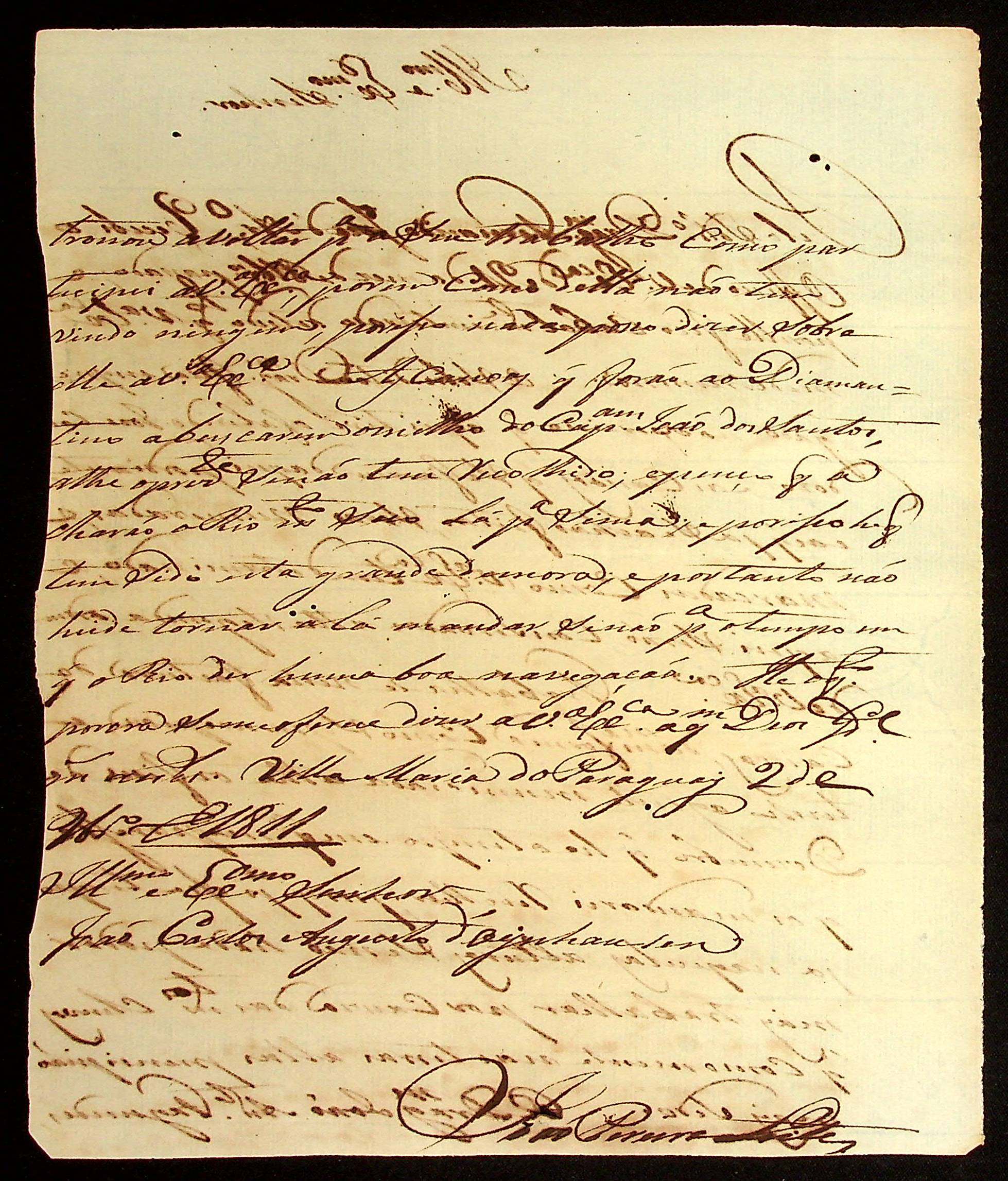 CARTA de João Pereira Leite ao [Governador e Capitão-General da Capitania de Mato Grosso] João Carlos Augusto d’Oeynhausen e Gravenberg.