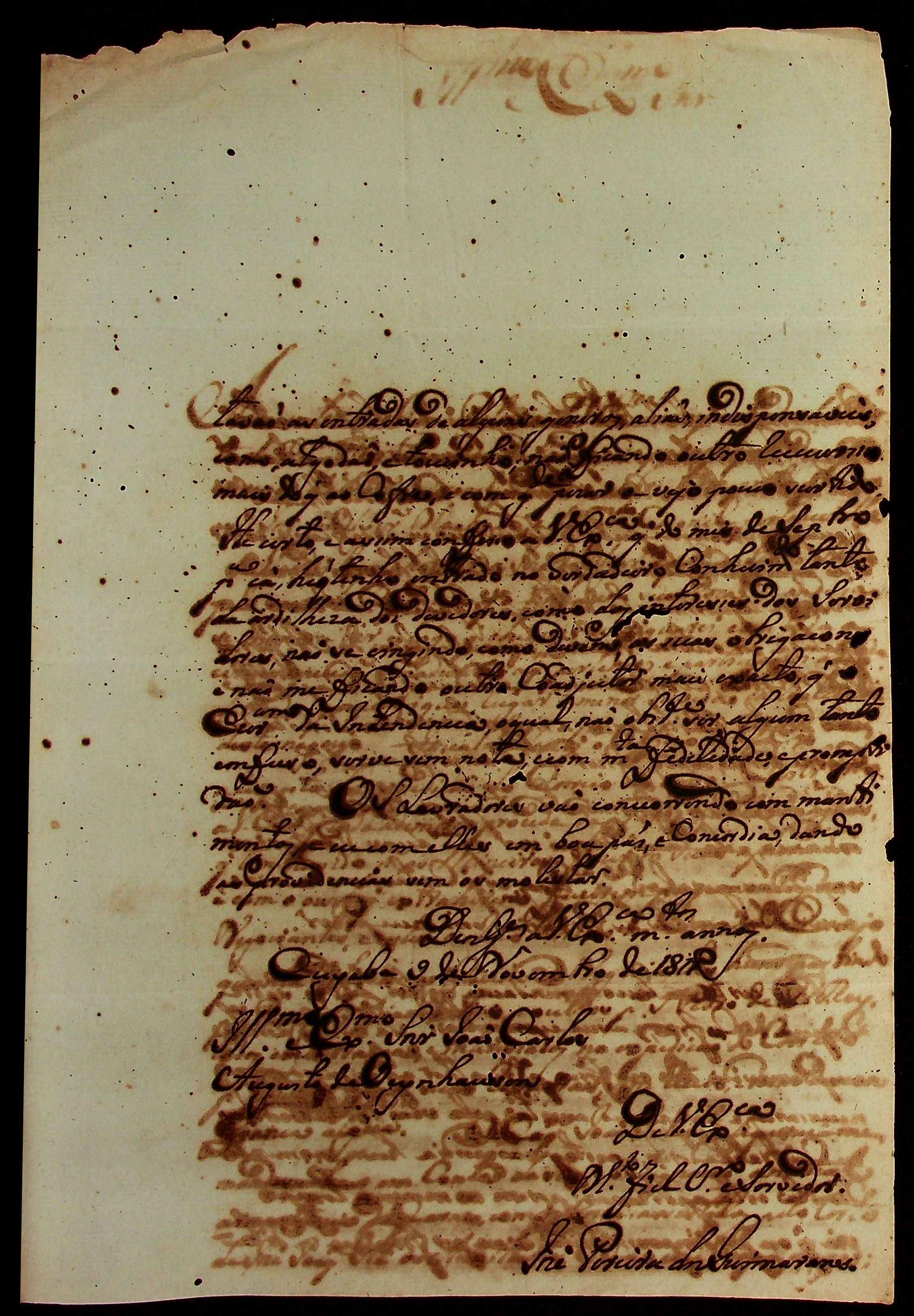 CARTA de João Pereira dos Guimarães ao [Governador e Capitão-General da Capitania de Mato Grosso] João Carlos Augusto d’Oeynhausen e Gravenberg.