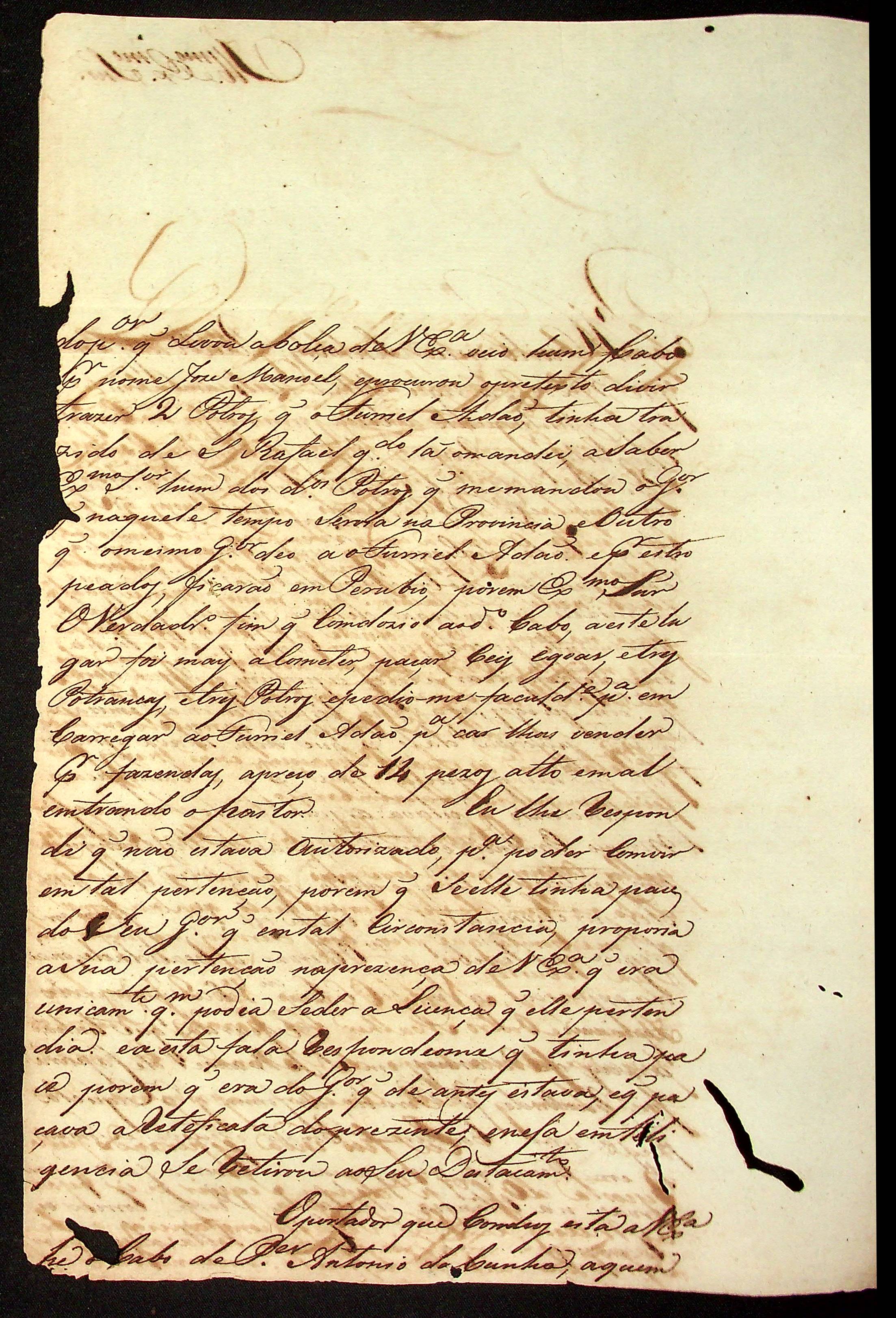 CARTA do [Alferes Comandante de Casalvasco] Flaviano José de Matos Coelho ao [Governador e Capitão-General da Capitania de Mato Grosso] João Carlos Augusto d’Oeynhausen e Gravenberg.