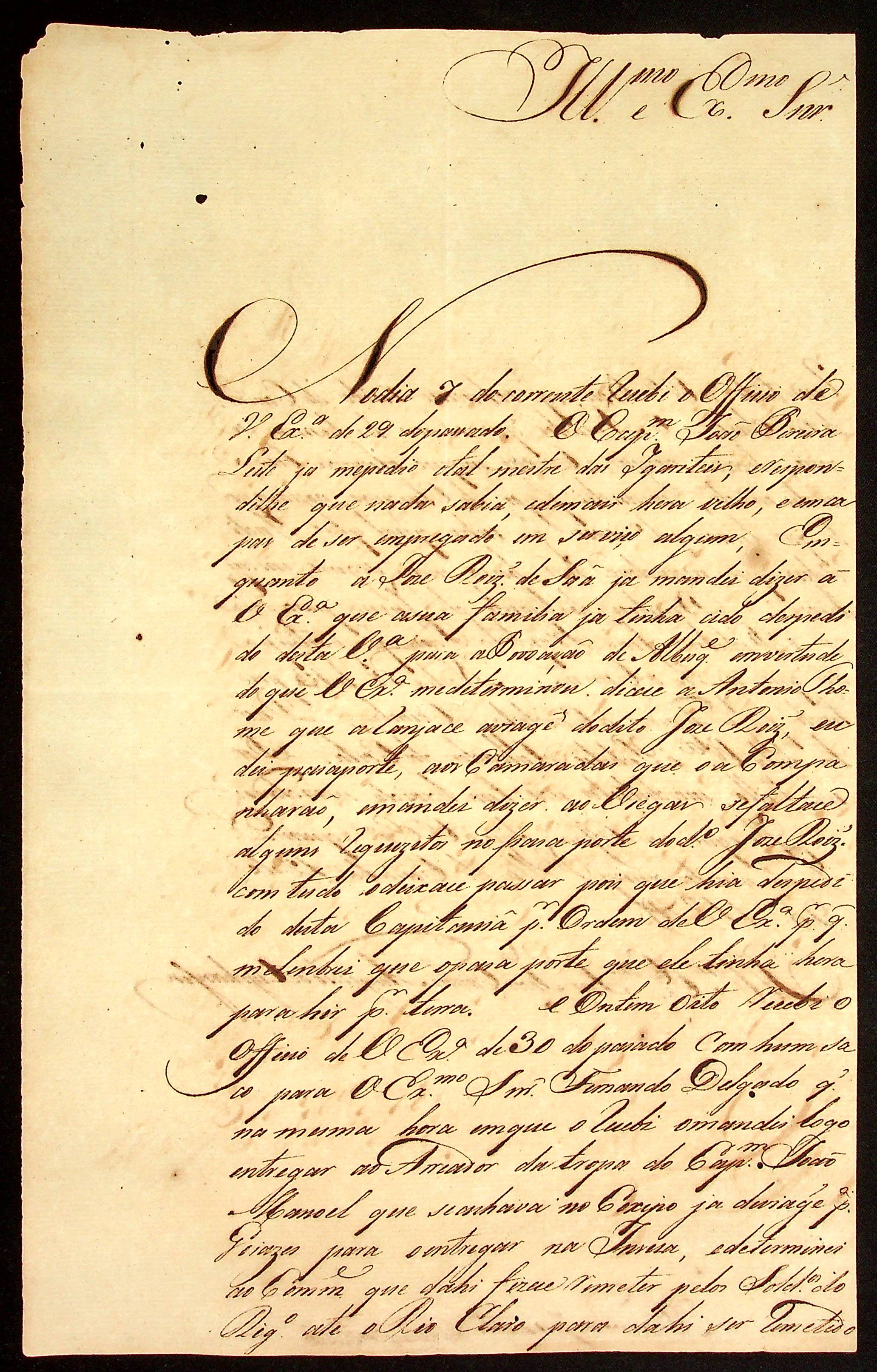 CARTA [Tenente-Coronel] Alexandre José Leite Chaves de Melo ao [Governador e Capitão-General da Capitania de Mato Grosso] João Carlos Augusto d’Oeynhausen e Gravenberg.