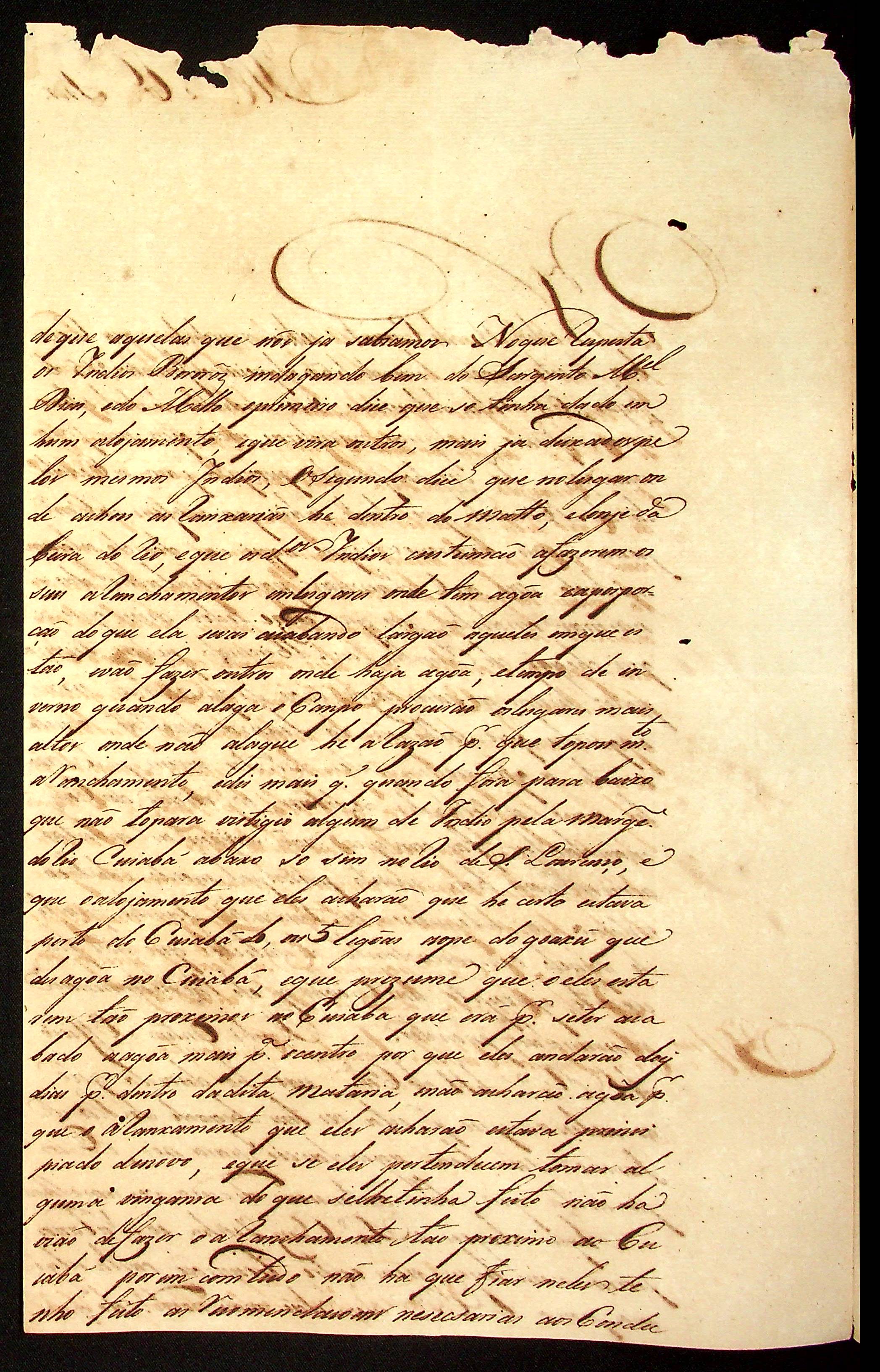 CARTA [Tenente-Coronel] Alexandre José Leite Chaves de Melo ao [Governador e Capitão-General da Capitania de Mato Grosso] João Carlos Augusto d’Oeynhausen e Gravenberg.