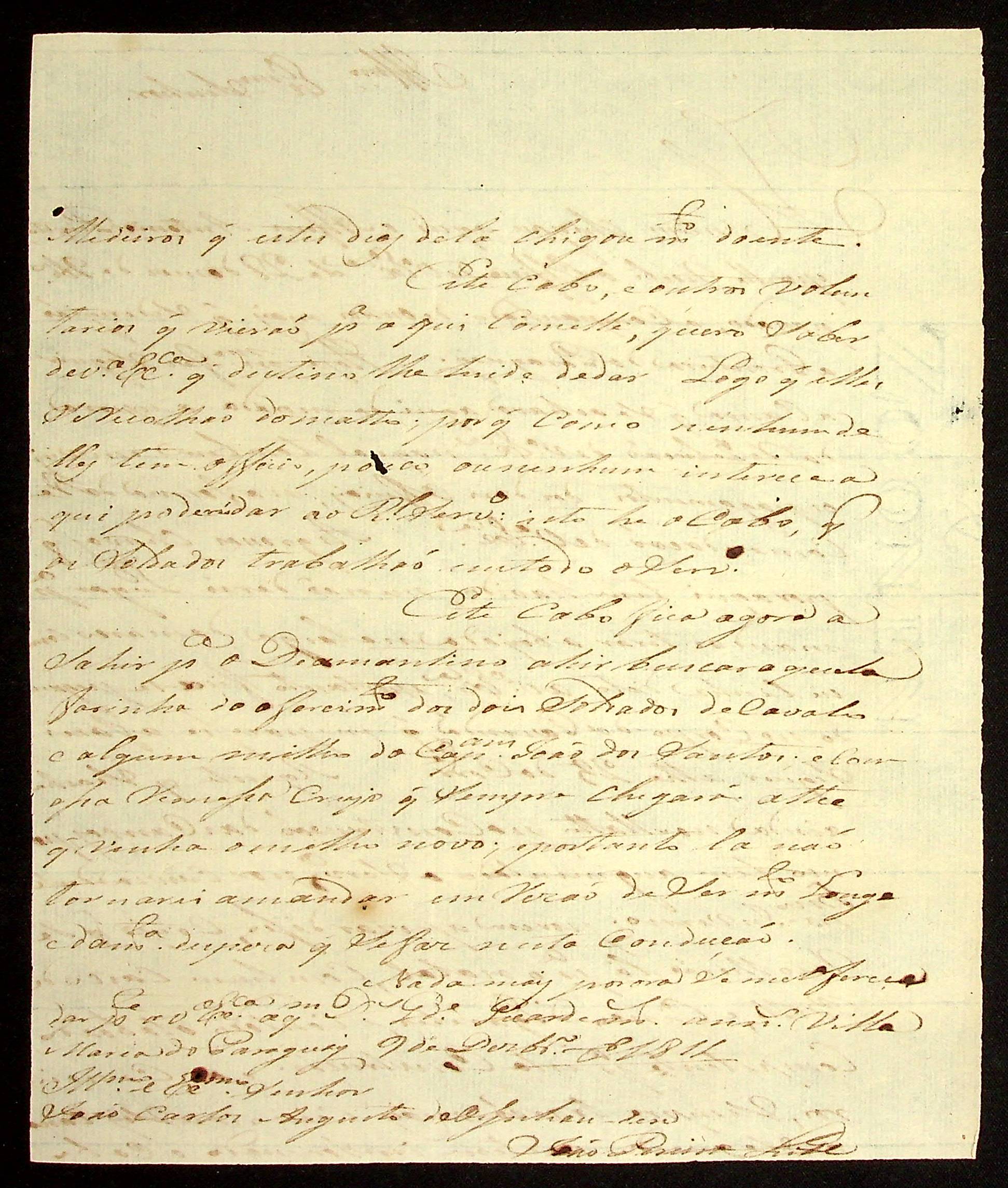 CARTA do [Comandante] João Pereira Leite ao [Governador e Capitão-General da Capitania de Mato Grosso] João Carlos Augusto d’Oeynhausen e Gravenberg.