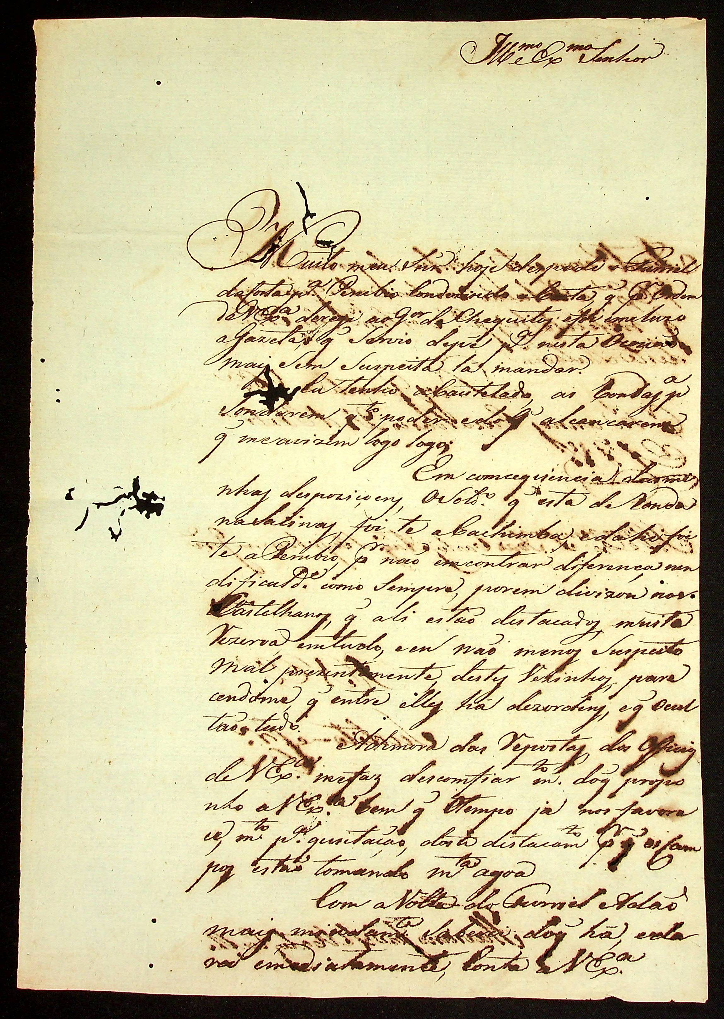 CARTA de Flaviano José de Matos Coelho ao [Governador e Capitão-General da Capitania de Mato Grosso] João Carlos Augusto d’Oeynhausen e Gravenberg.