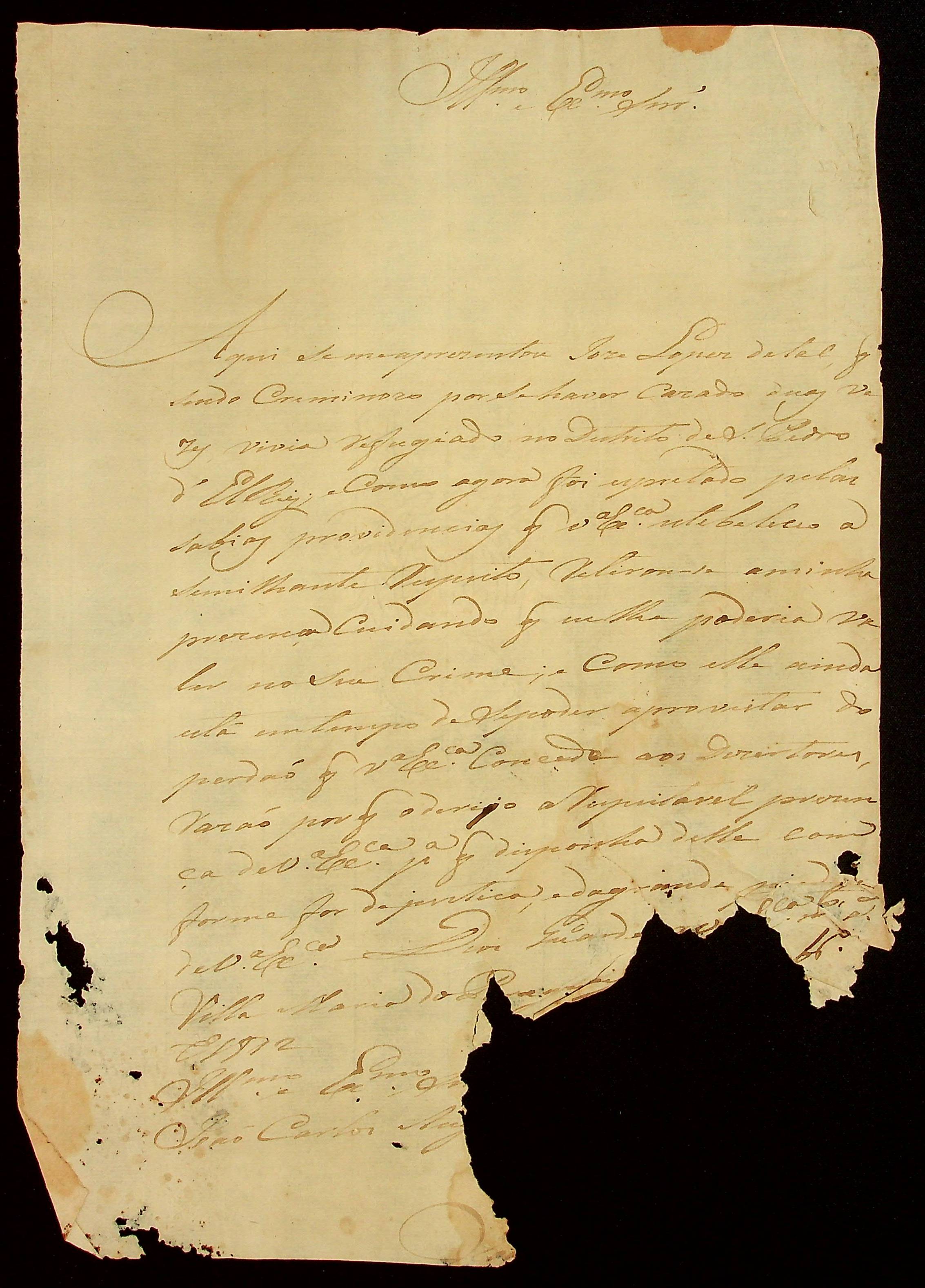 CARTA do [Capitão Comandante da Companhia de Pedestres da Capitania de Mato Grosso João Pereira Leite ao [Governador e Capitão-General da Capitania de Mato Grosso] João Carlos Augusto d’Oeynhausen e Gravenberg.
