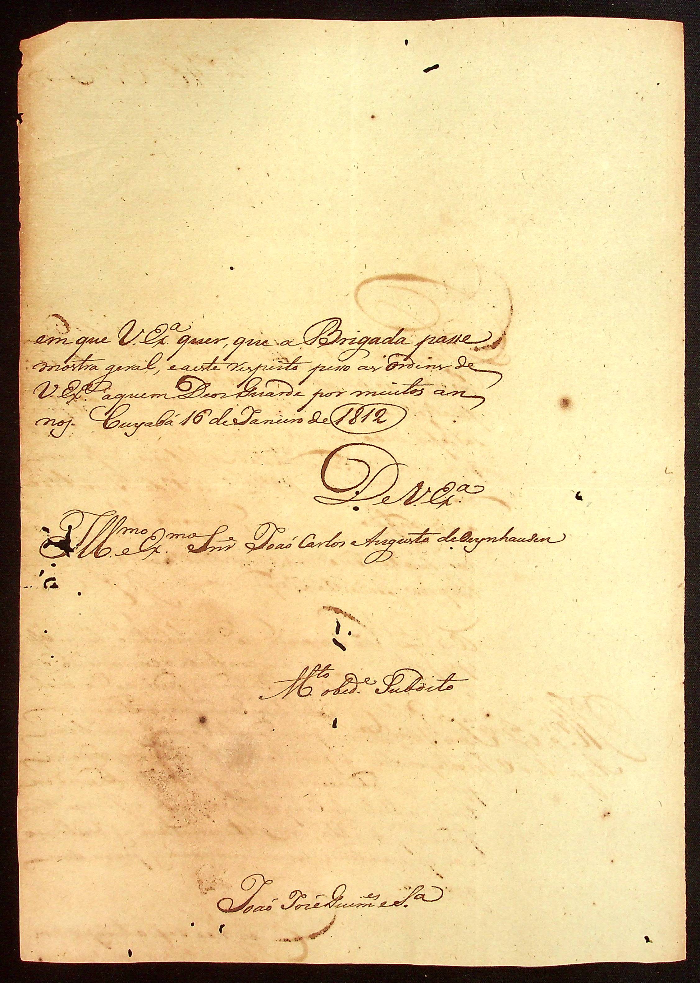 CARTA de João Pereira dos Guimarães ao [Governador e Capitão-General da Capitania de Mato Grosso] João Carlos Augusto d’Oeynhausen e Gravenberg.