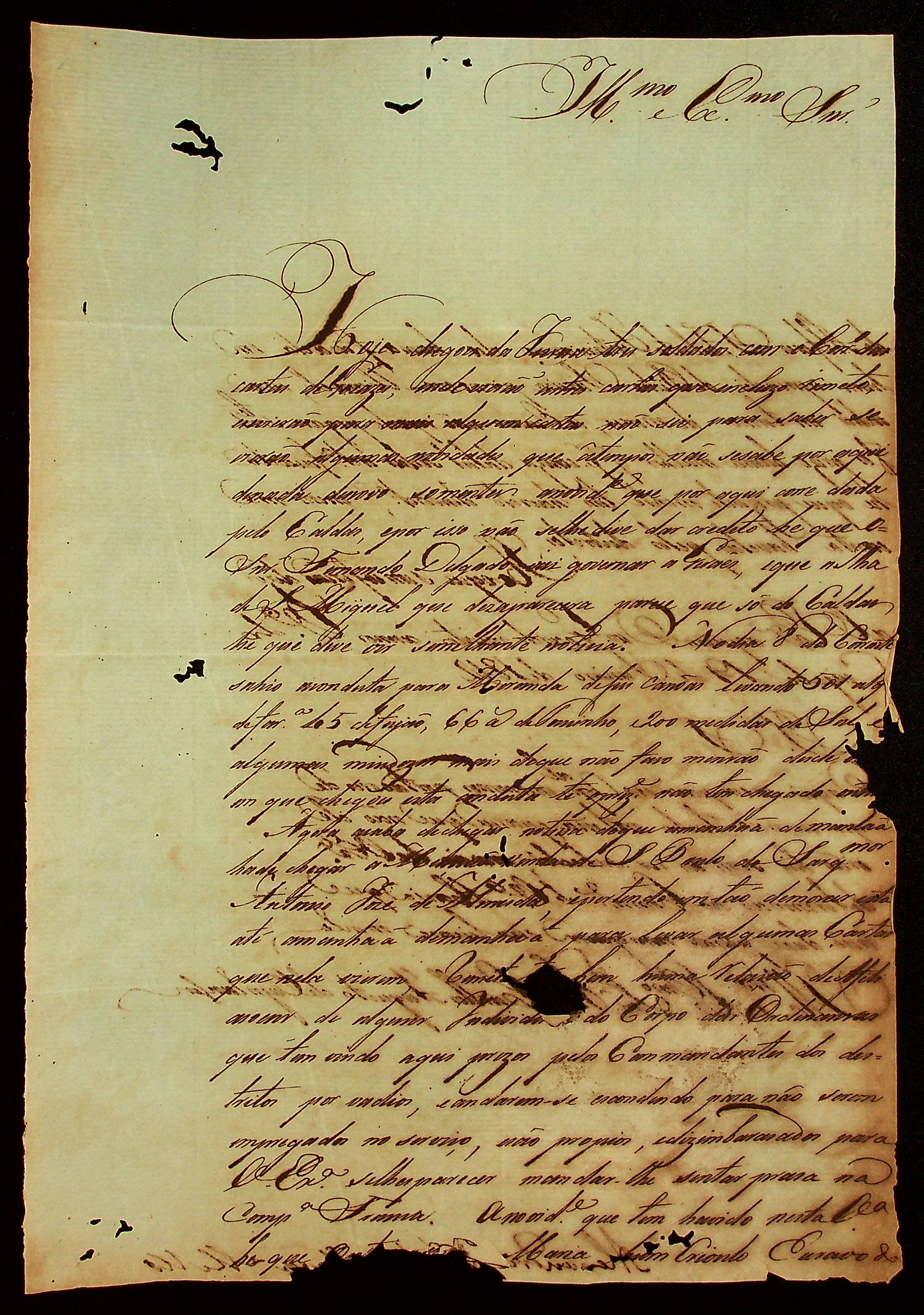 CARTA [Tenente-Coronel] Alexandre José Leite Chaves de Melo ao [Governador e Capitão-General da Capitania de Mato Grosso] João Carlos Augusto d’Oeynhausen e Gravenberg.