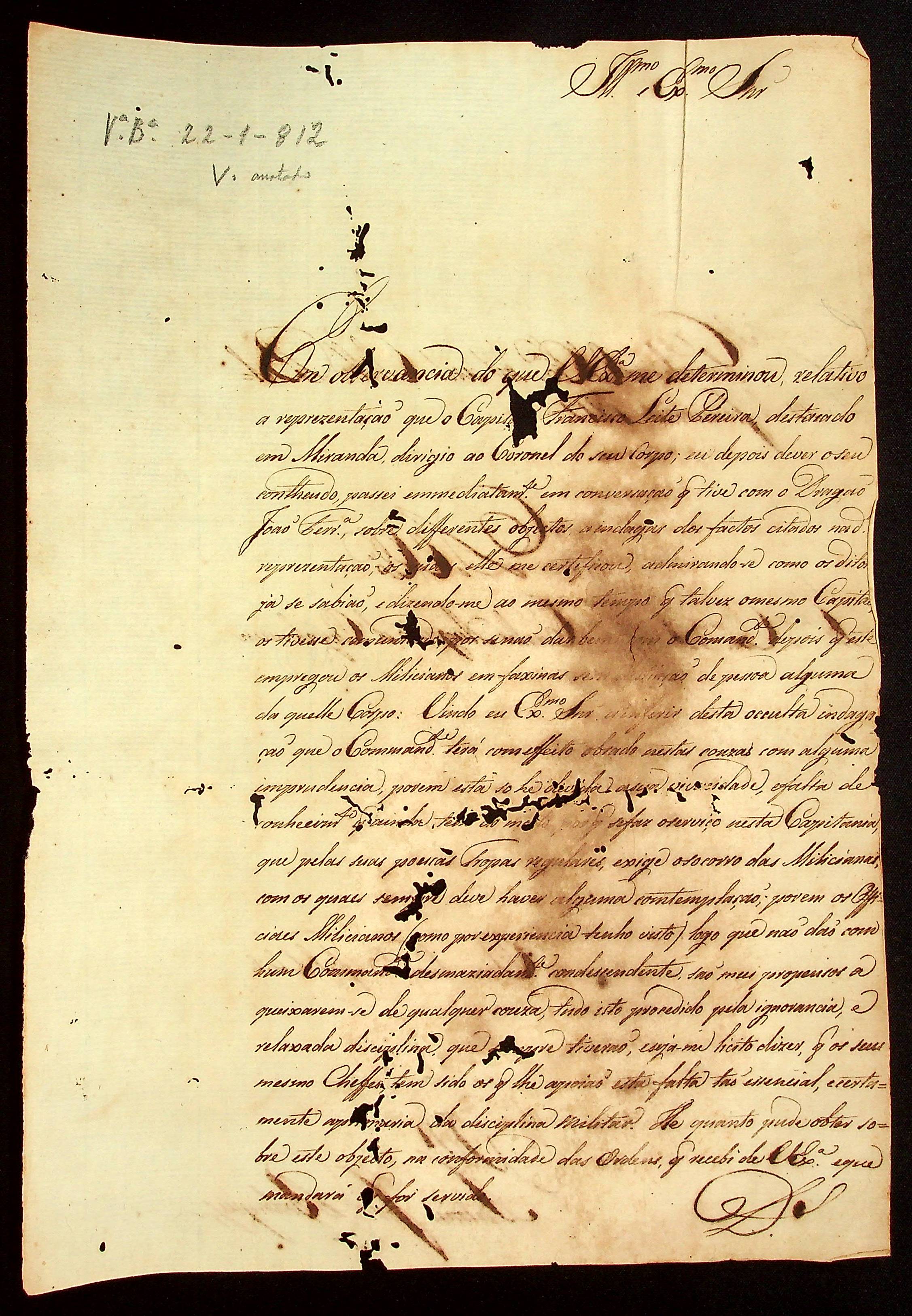 CARTA do [Tenente-Coronel] Antônio José Rodrigues ao [Governador e Capitão-General da Capitania de Mato Grosso] João Carlos Augusto d’Oeynhausen e Gravenberg.