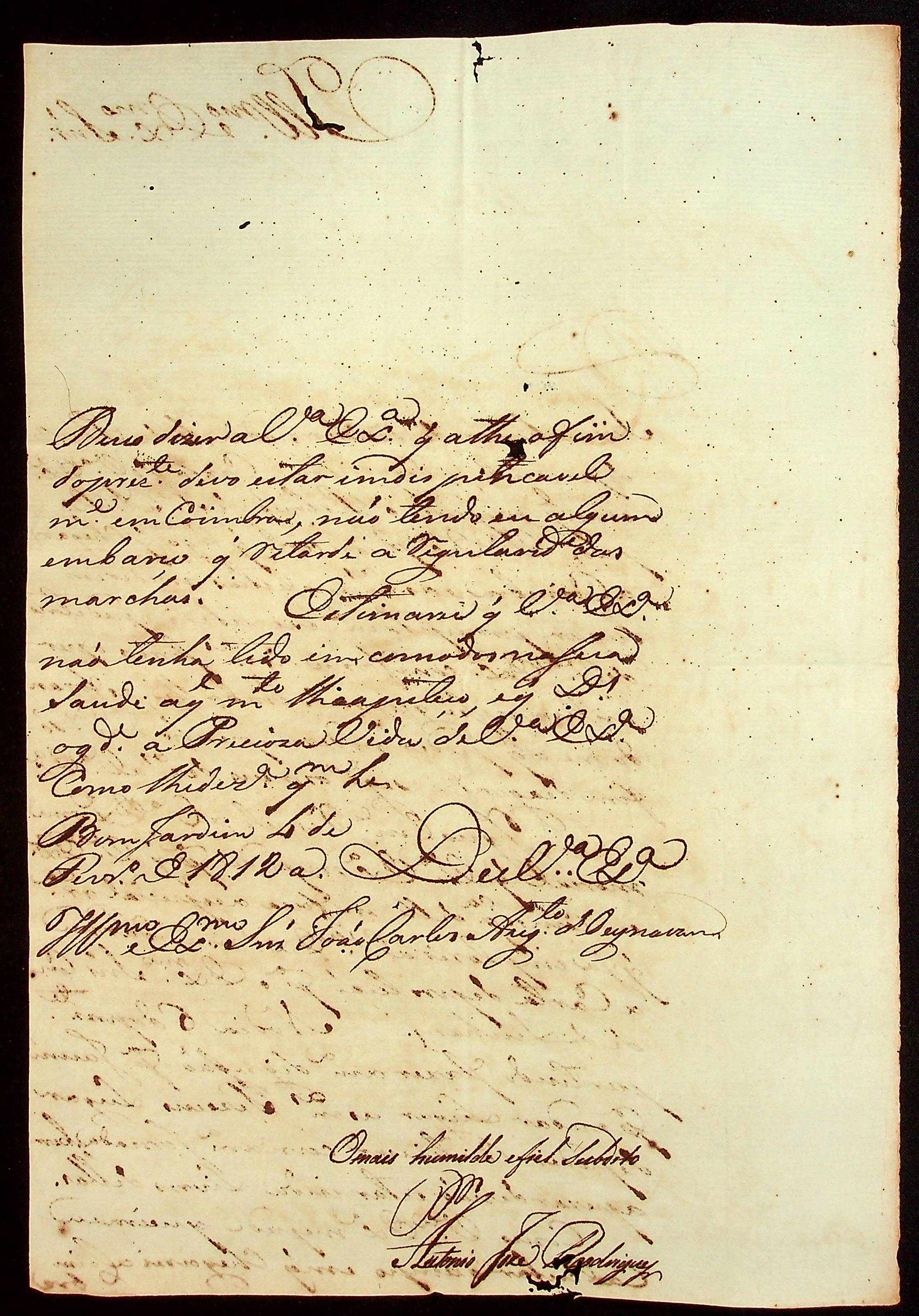 CARTA do [Tenente-Coronel] Antônio José Rodrigues ao [Governador e Capitão-General da Capitania de Mato Grosso] João Carlos Augusto d’Oeynhausen e Gravenberg.