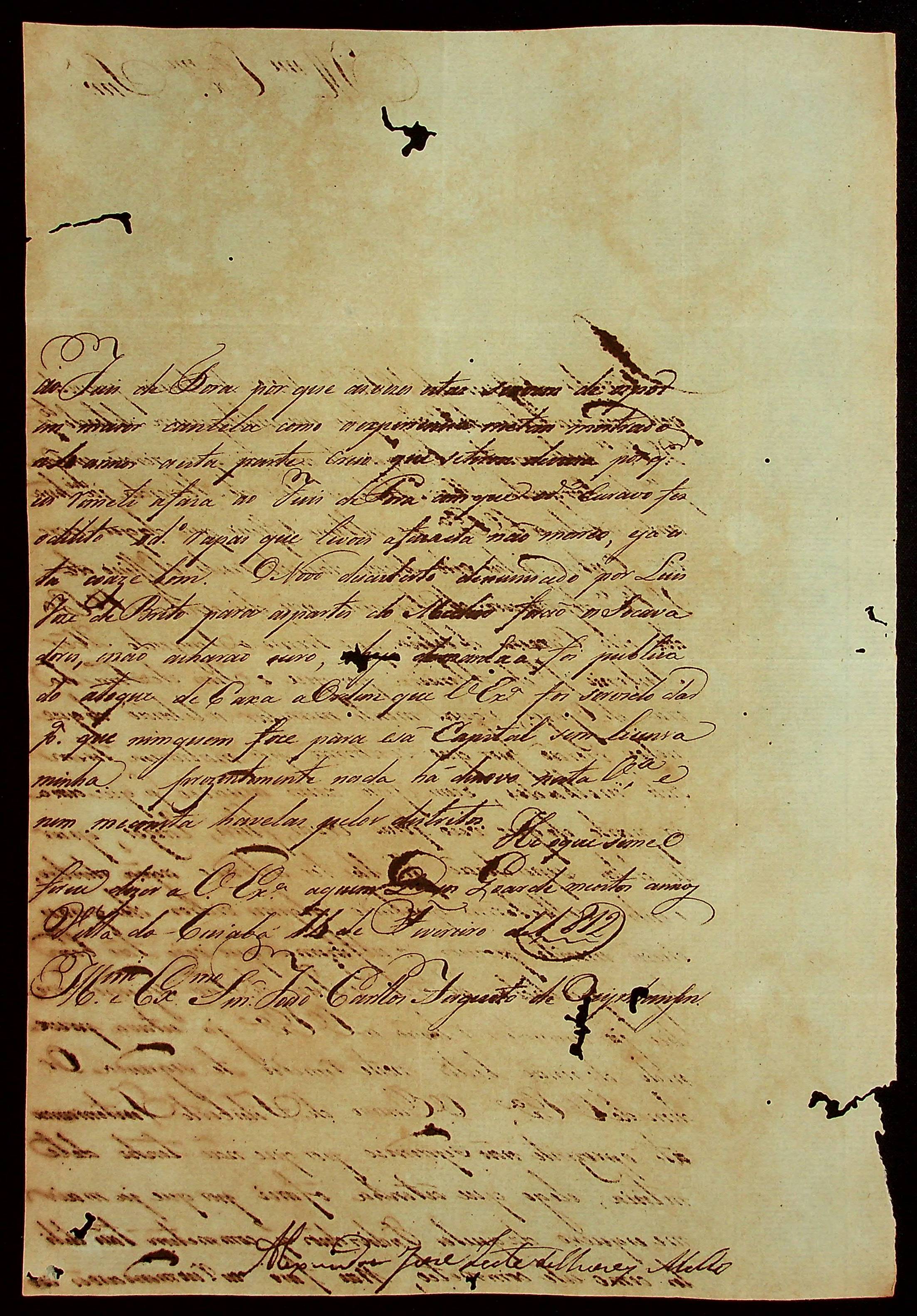CARTA [Tenente-Coronel [Alexandre José Leite Chaves de Melo ao [Governador e Capitão-General da Capitania de Mato Grosso] João Carlos Augusto d’Oeynhausen e Gravenberg.