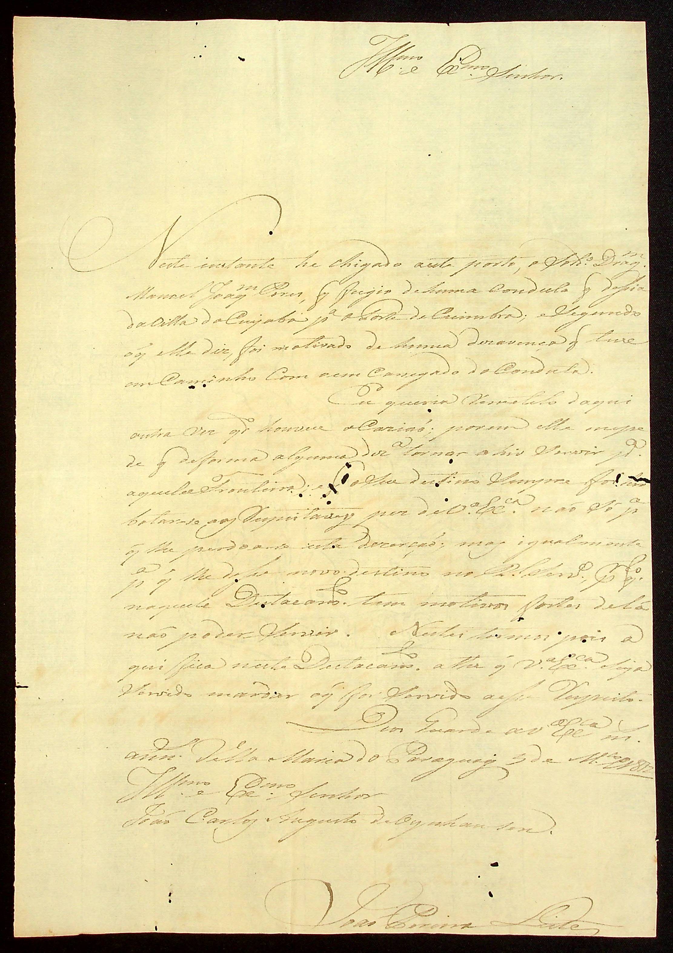 CARTA do [Comandante] João Pereira Leite ao [Governador e Capitão-General da Capitania de Mato Grosso] João Carlos Augusto d’Oeynhausen e Gravenberg.