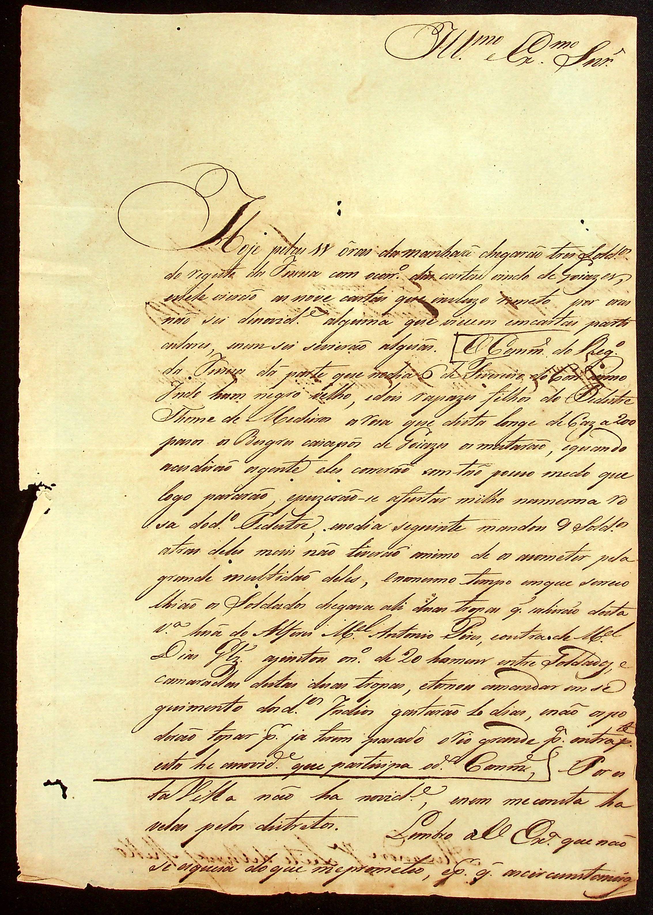 CARTA de Alexandre José Leite Chaves de Melo ao [Governador e Capitão-General da Capitania de Mato Grosso] João Carlos Augusto d’Oeynhausen e Gravenberg.