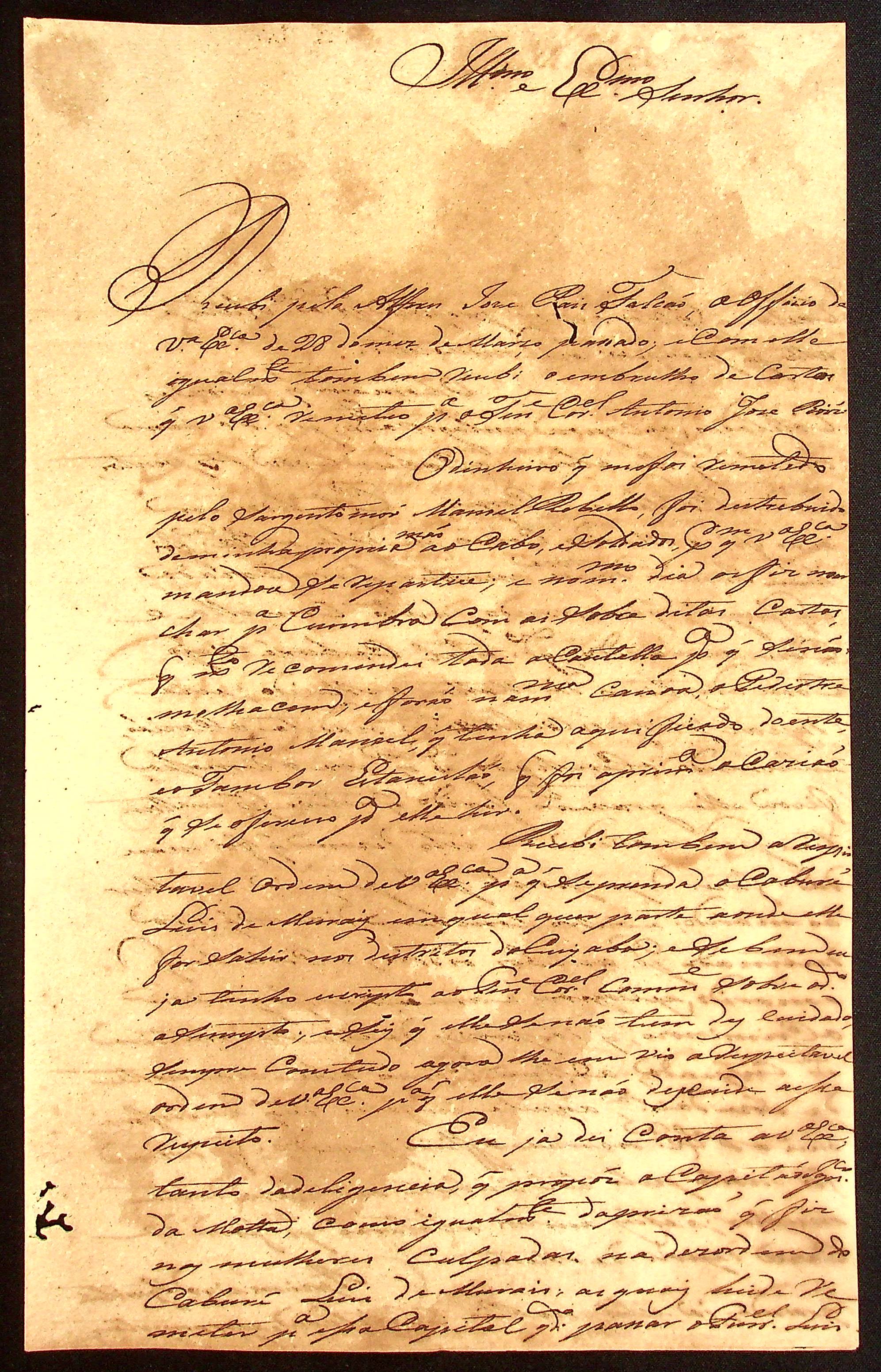 CARTA do [Comandante] João Pereira Leite ao [Governador e Capitão-General da Capitania de Mato Grosso] João Carlos Augusto d’Oeynhausen e Gravenberg.
