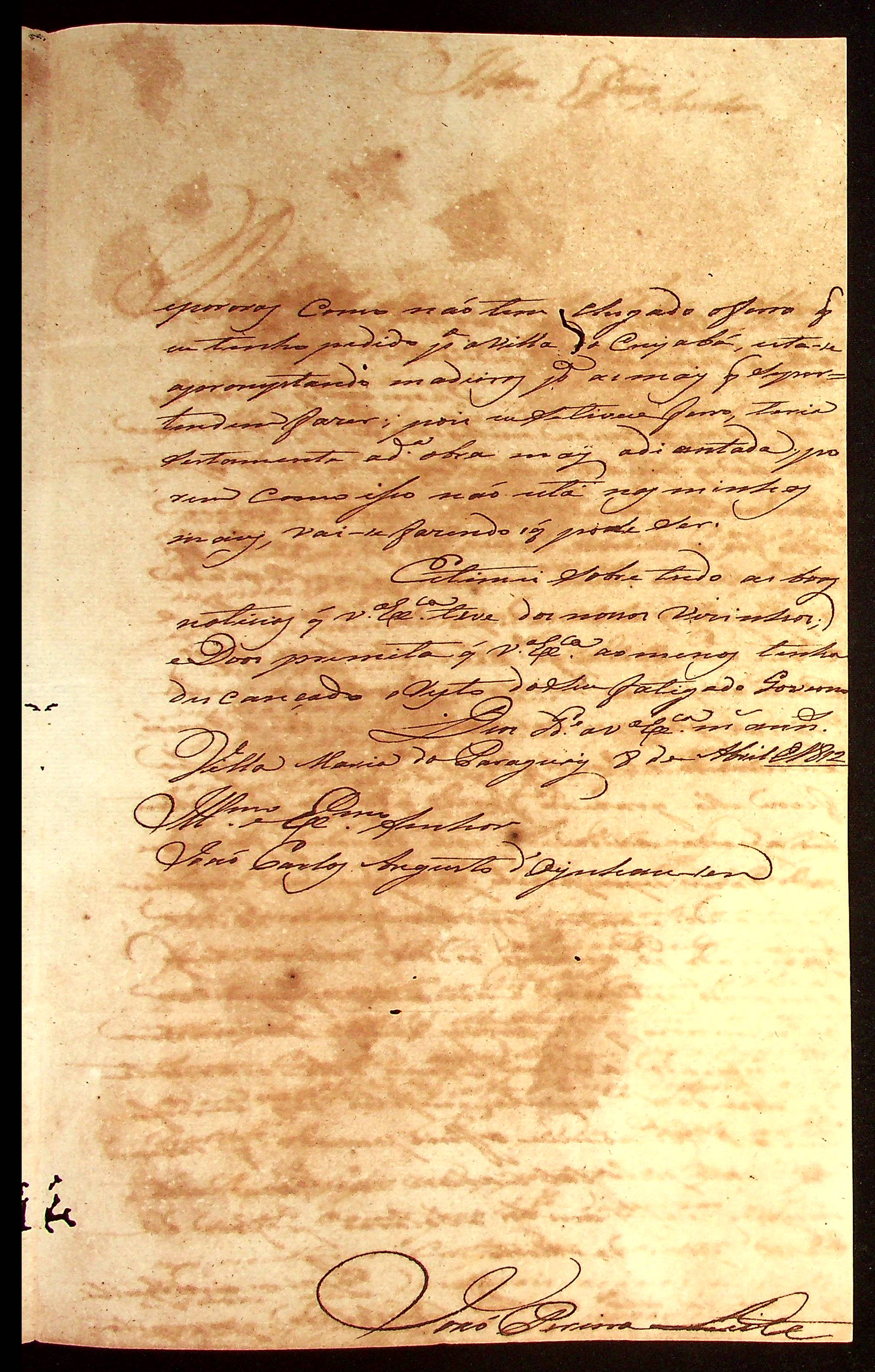CARTA do [Comandante] João Pereira Leite ao [Governador e Capitão-General da Capitania de Mato Grosso] João Carlos Augusto d’Oeynhausen e Gravenberg.