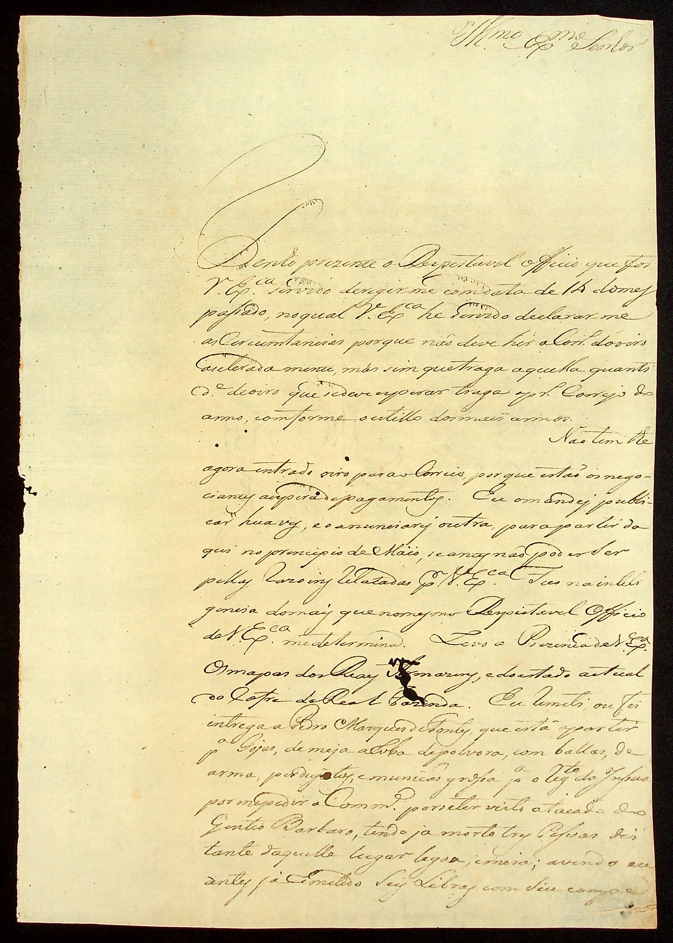 CARTA do [Capitão] Antônio Gomes da Costa ao [Governador e Capitão-General da Capitania de Mato Grosso] João Carlos Augusto d’Oeynhausen e Gravenberg.