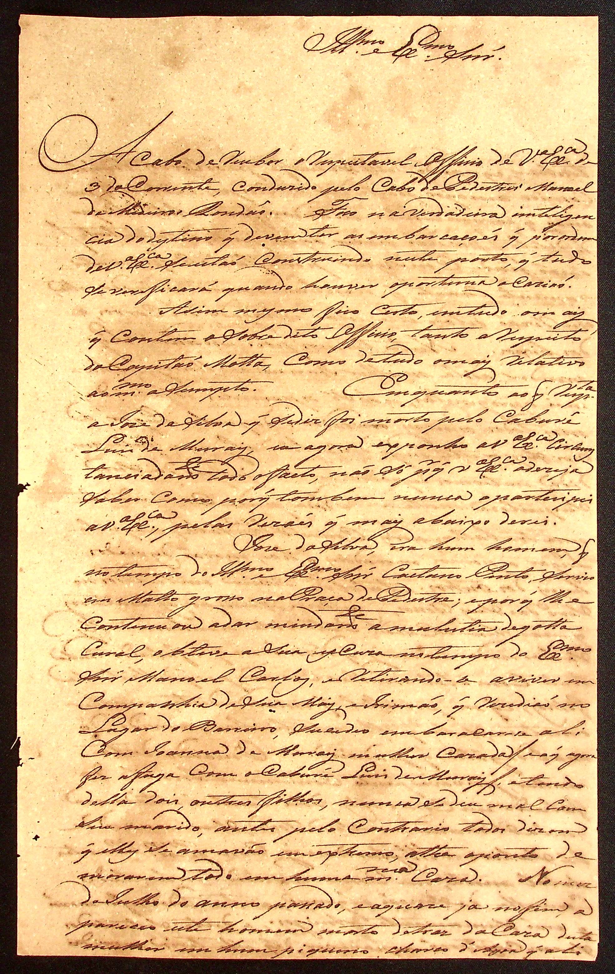 CARTA do [Comandante] João Pereira Leite ao [Governador e Capitão-General da Capitania de Mato Grosso] João Carlos Augusto d’Oeynhausen e Gravenberg.