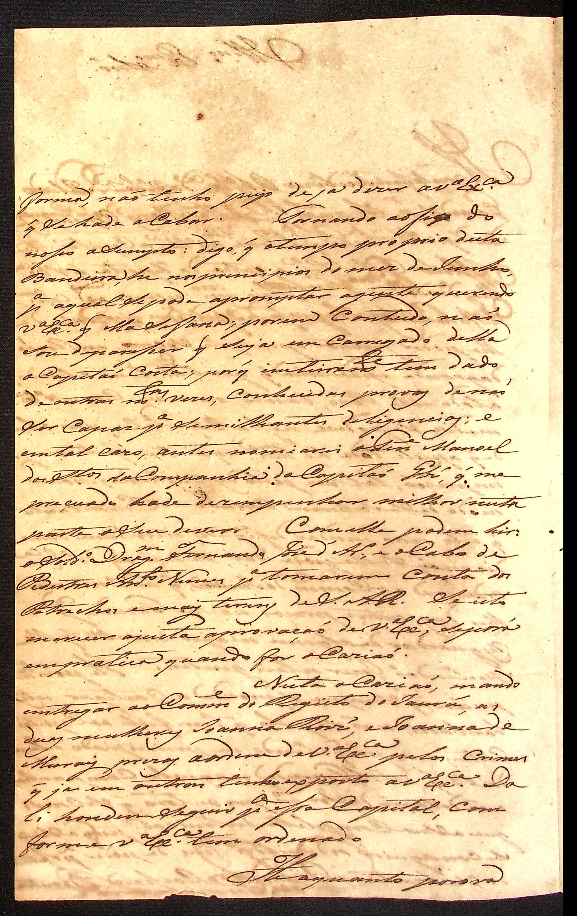 CARTA do [Comandante] João Pereira Leite ao [Governador e Capitão-General da Capitania de Mato Grosso] João Carlos Augusto d’Oeynhausen e Gravenberg.
