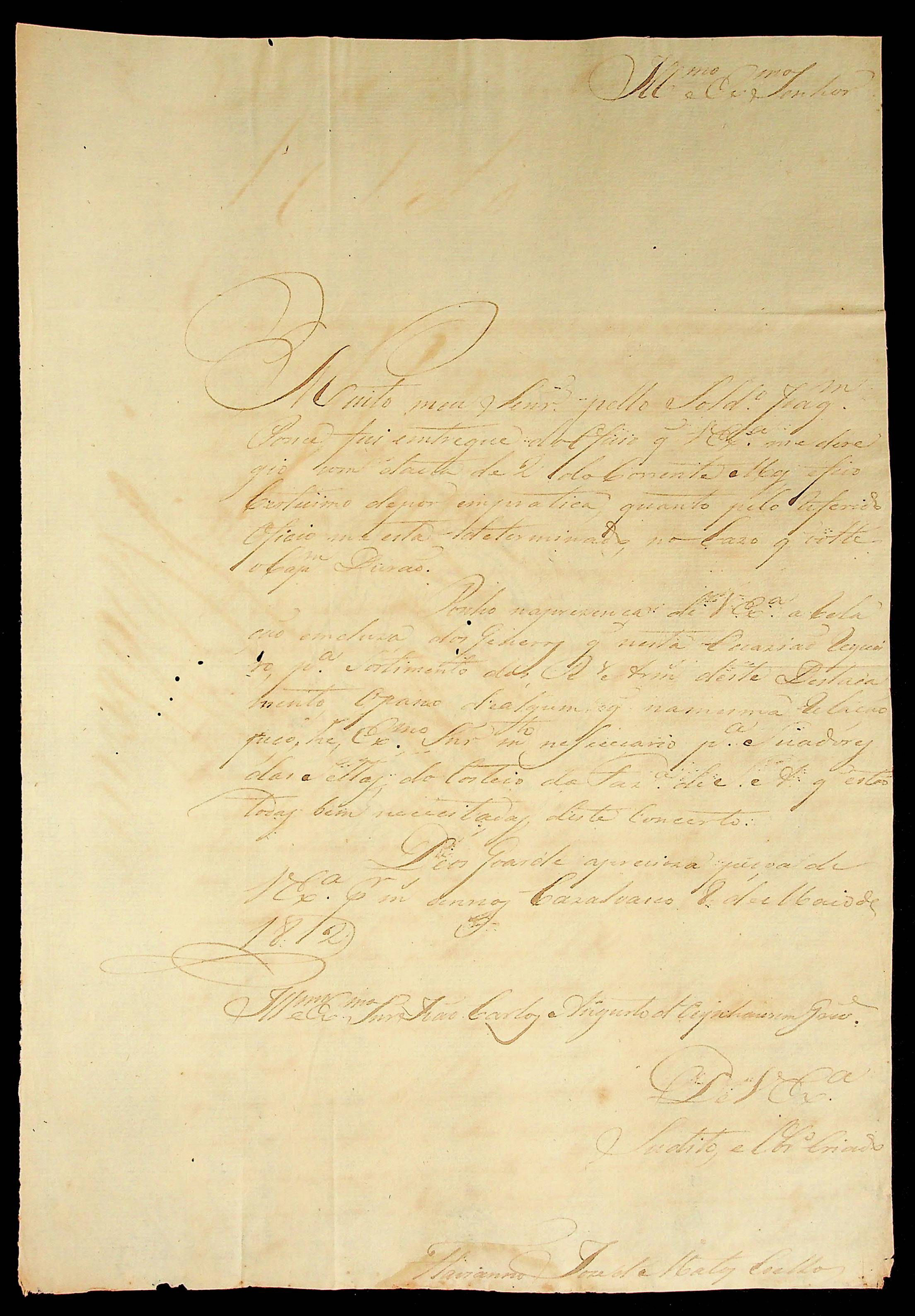 CARTA do [Comandante] Flaviano José de Matos Coelho ao [Governador e Capitão-General da Capitania de Mato Grosso] João Carlos Augusto d’Oeynhausen e Gravenberg.
