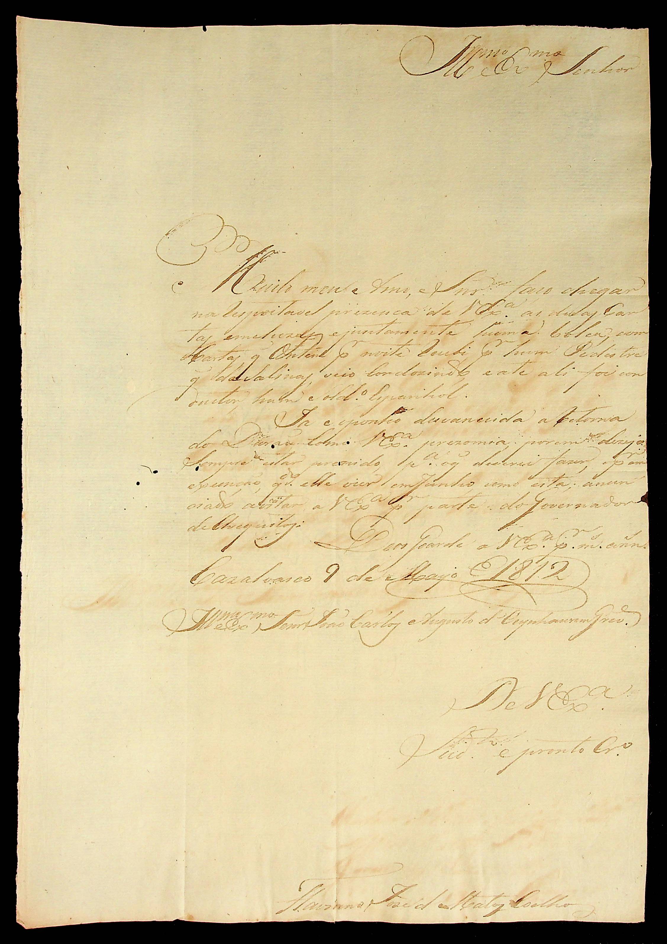 CARTA do [Comandante] Flaviano José de Matos Coelho ao [Governador e Capitão-General da Capitania de Mato Grosso] João Carlos Augusto d’Oeynhausen e Gravenberg.