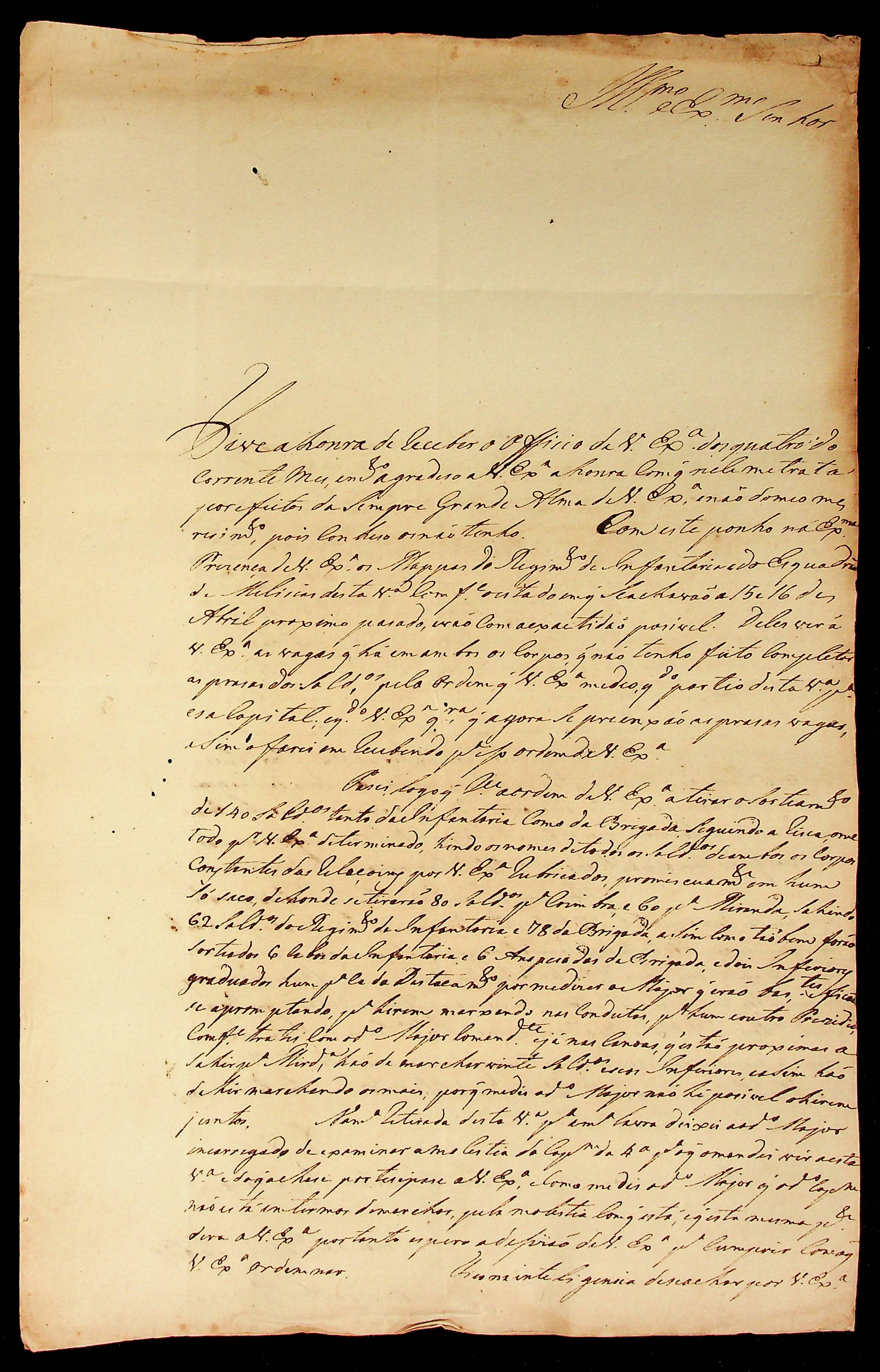 CARTA do [Tenente-Coronel] Gabriel Fonseca Souza ao [Governador e Capitão-General da Capitania de Mato Grosso] João Carlos Augusto d’Oeynhausen e Gravenberg.