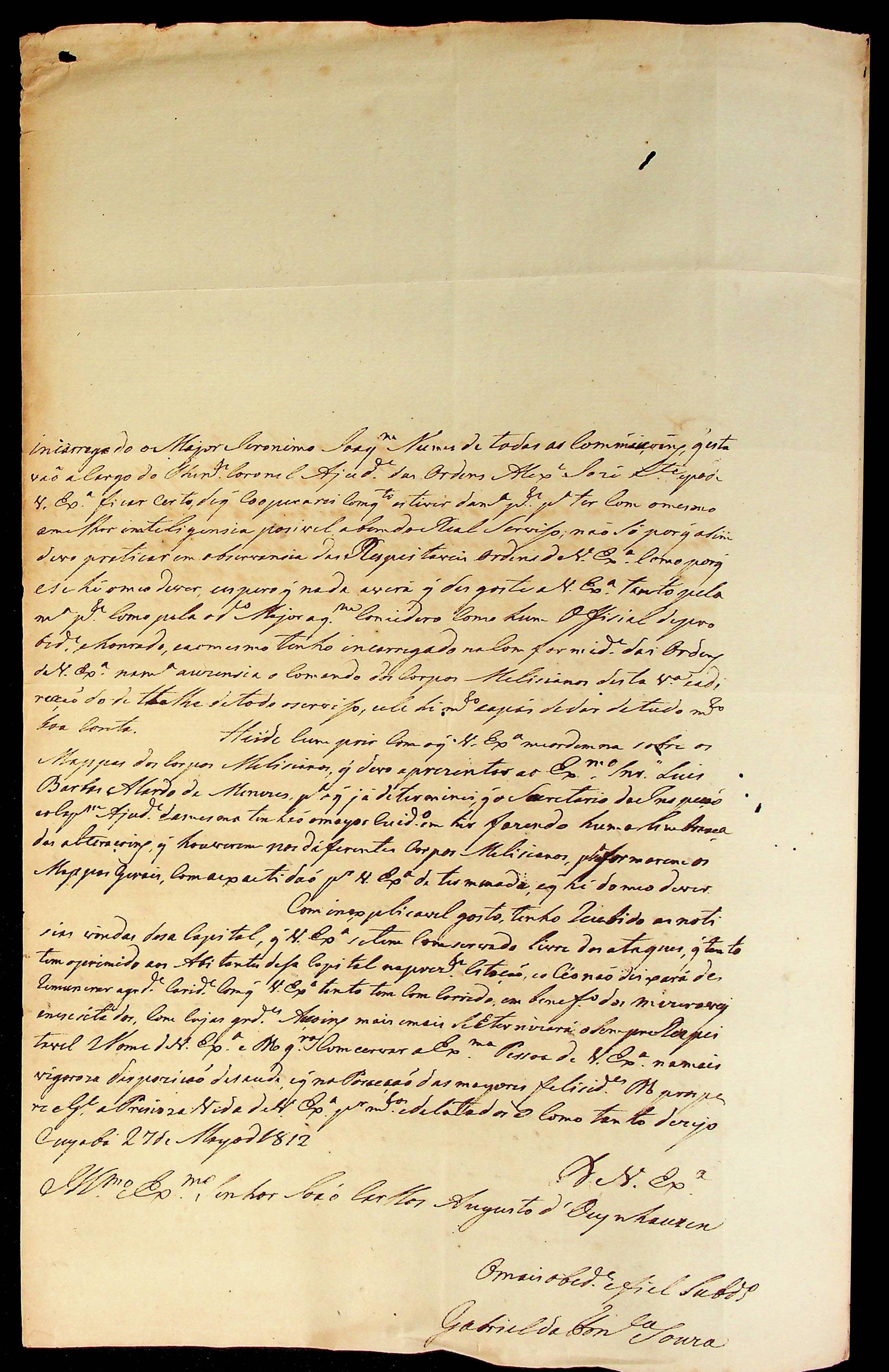 CARTA do [Tenente-Coronel] Gabriel Fonseca Souza ao [Governador e Capitão-General da Capitania de Mato Grosso] João Carlos Augusto d’Oeynhausen e Gravenberg.