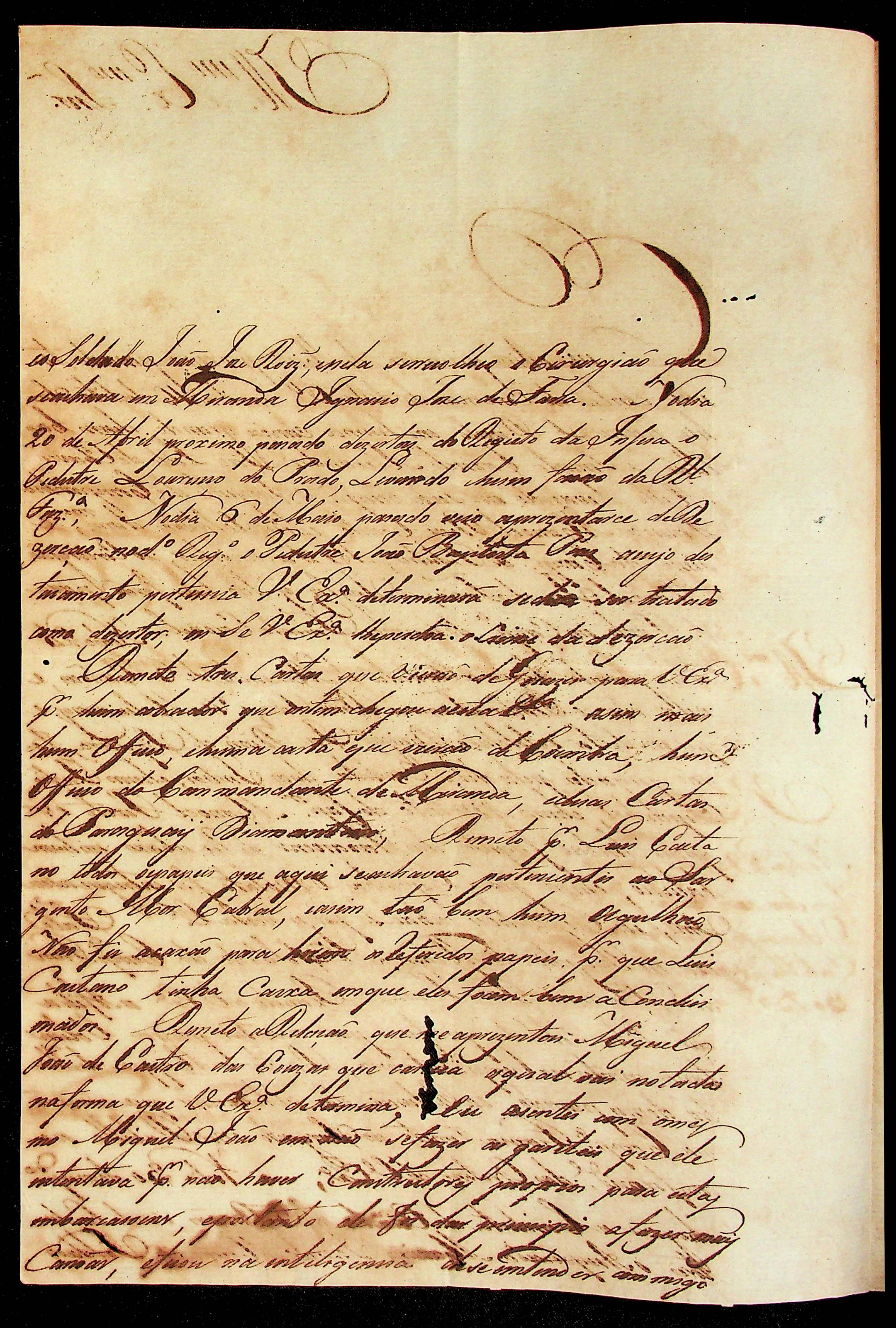 CARTA de Jerônimo Joaquim Nunes ao [Governador e Capitão-General da Capitania de Mato Grosso] João Carlos Augusto d’Oeynhausen e Gravenberg.