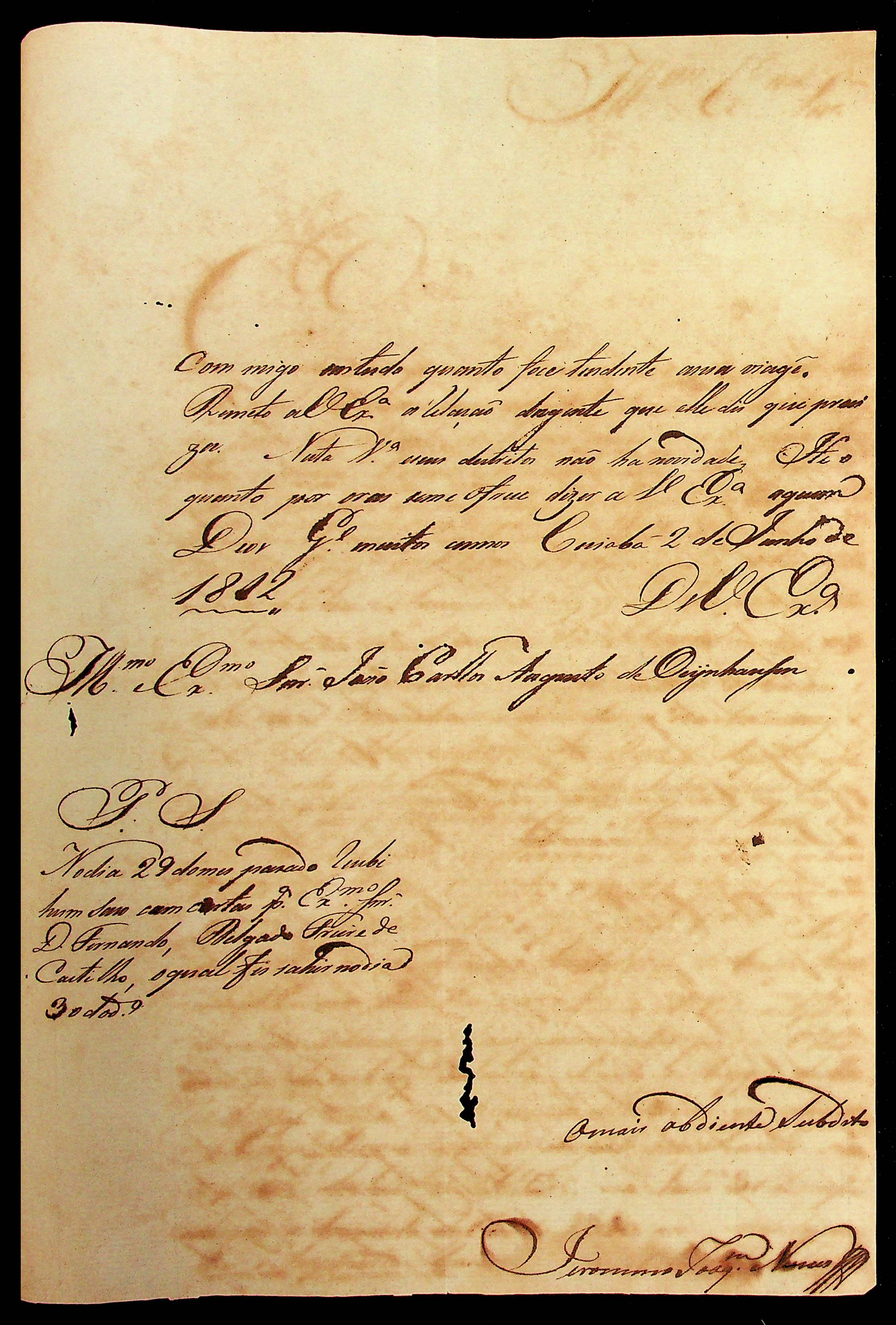 CARTA de Jerônimo Joaquim Nunes ao [Governador e Capitão-General da Capitania de Mato Grosso] João Carlos Augusto d’Oeynhausen e Gravenberg.