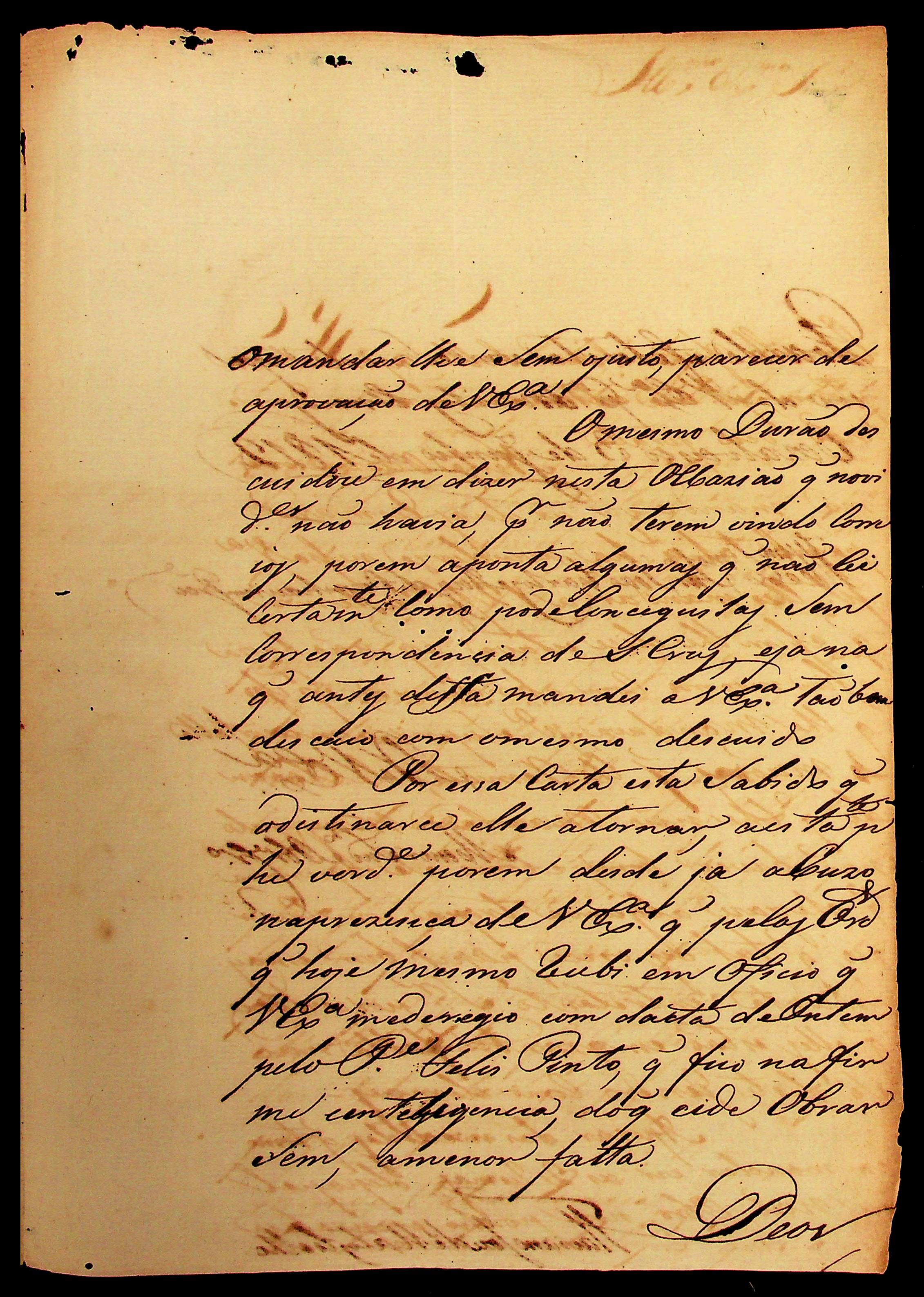 CARTA de Flaviano José de Matos Coelho ao [Governador e Capitão-General da Capitania de Mato Grosso] João Carlos Augusto d’Oeynhausen e Gravenberg.
