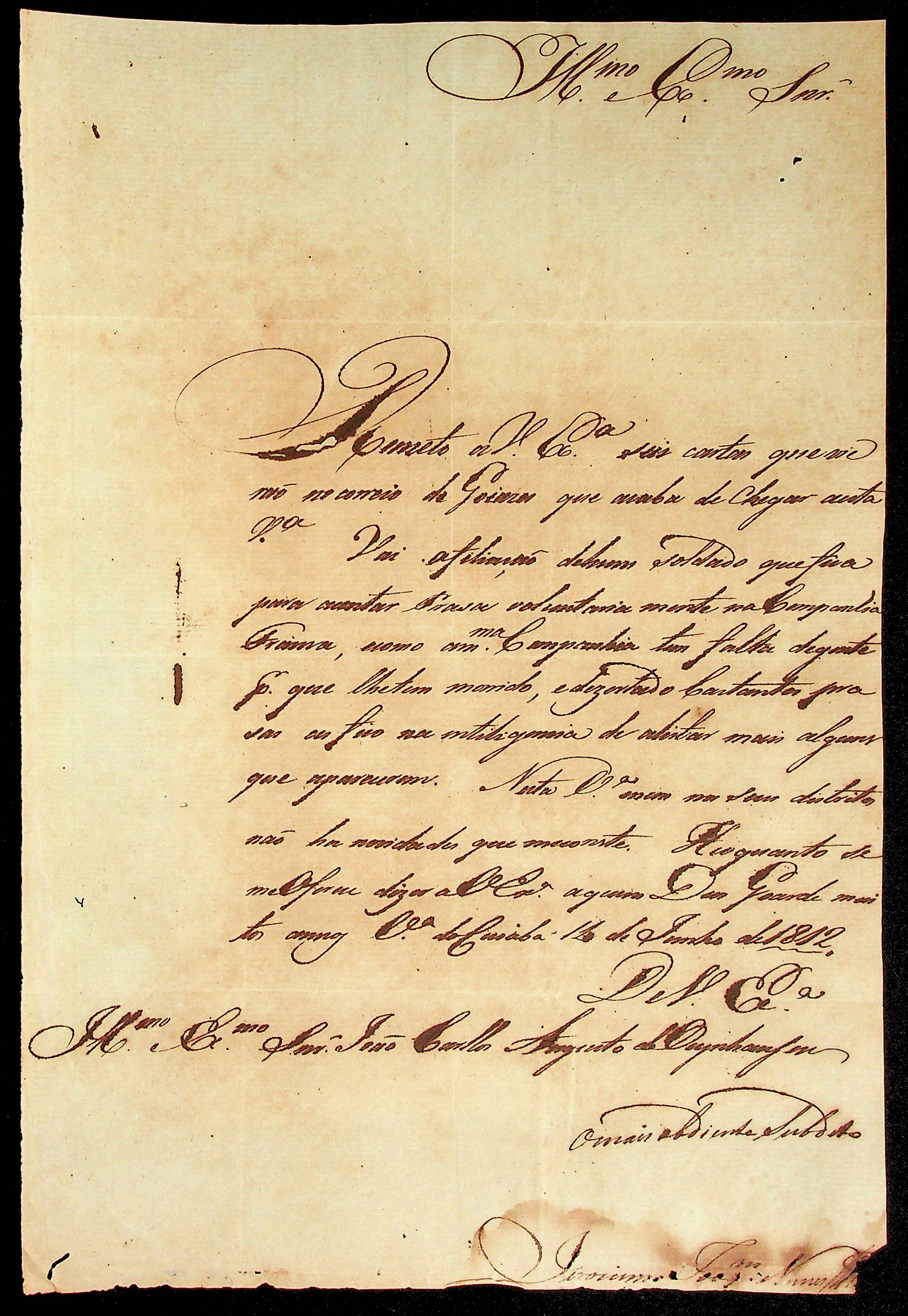 CARTA de Jerônimo Joaquim Nunes ao [Governador e Capitão-General da Capitania de Mato Grosso] João Carlos Augusto d’Oeynhausen e Gravenberg.