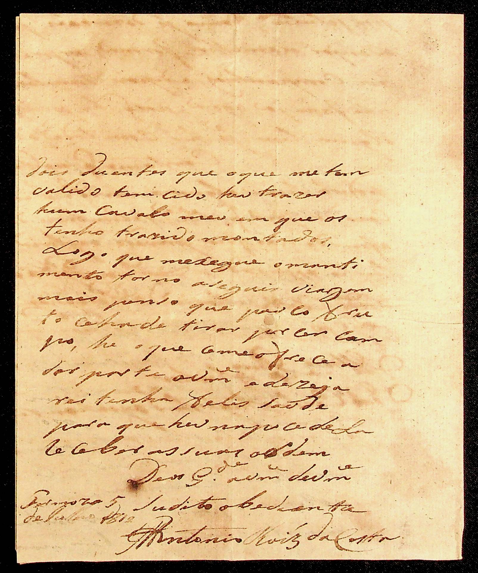 CARTA de Antônio Rodrigues da Costa ao Capitão Comandante João Pereira Leite.