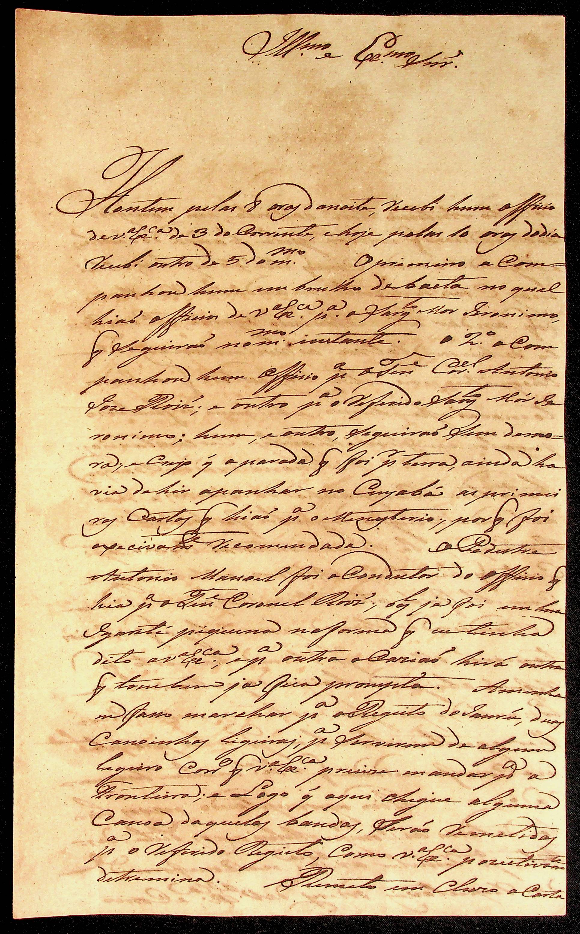 CARTA do [Comandante] João Pereira Leite ao [Governador e Capitão-General da Capitania de Mato Grosso] João Carlos Augusto d’Oeynhausen e Gravenberg.