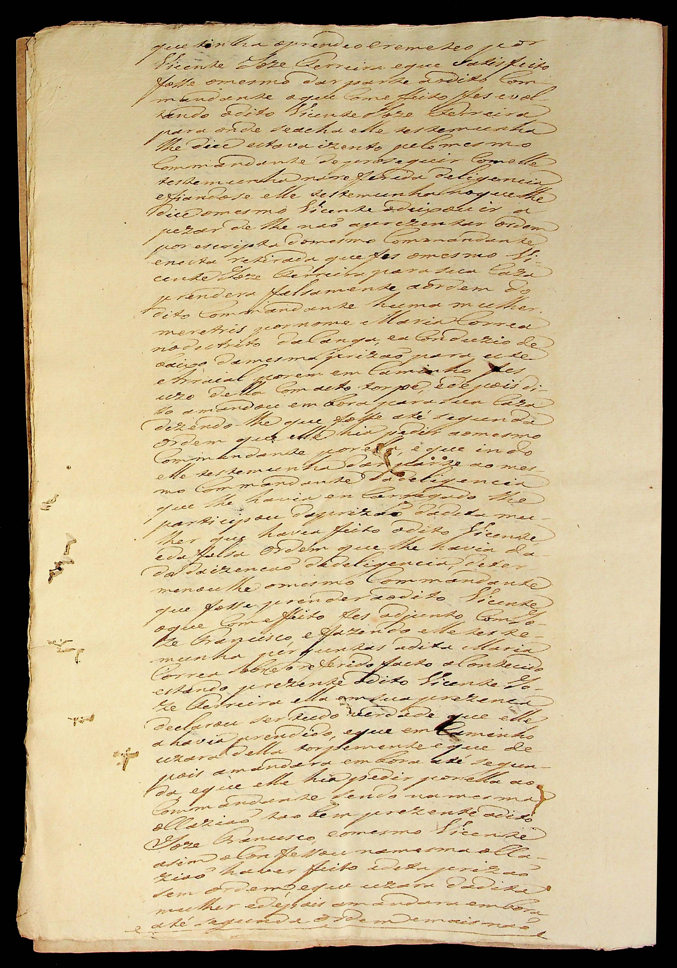 CARTA do [Alferes e Comandante [Vicente Marques de Oliveira ao [Governador e Capitão-General da Capitania de Mato Grosso] João Carlos Augusto d’Oeynhausen e Gravenberg.