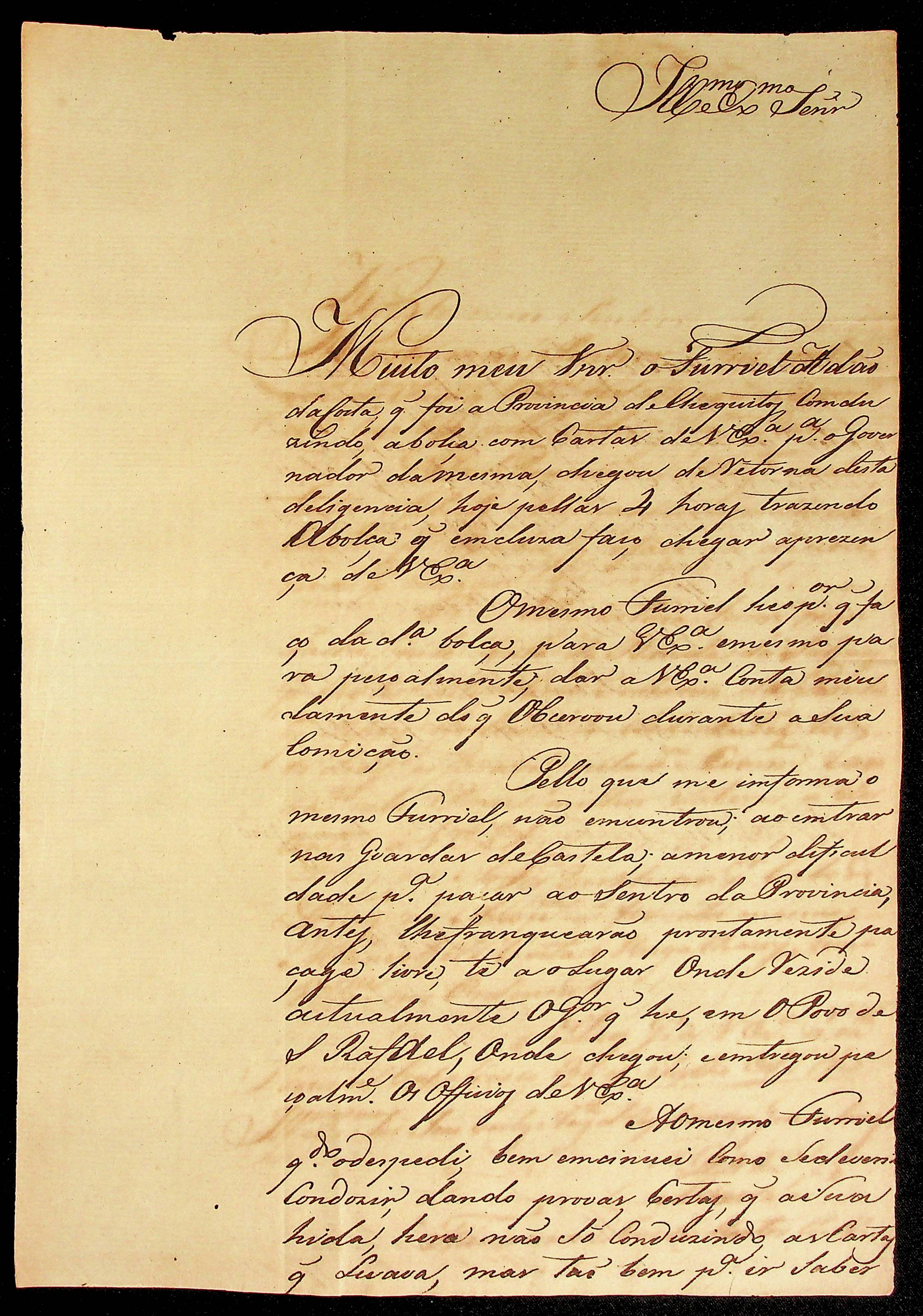 CARTA de Flaviano José de Matos Coelho ao [Governador e Capitão-General da Capitania de Mato Grosso] João Carlos Augusto d’Oeynhausen e Gravenberg.