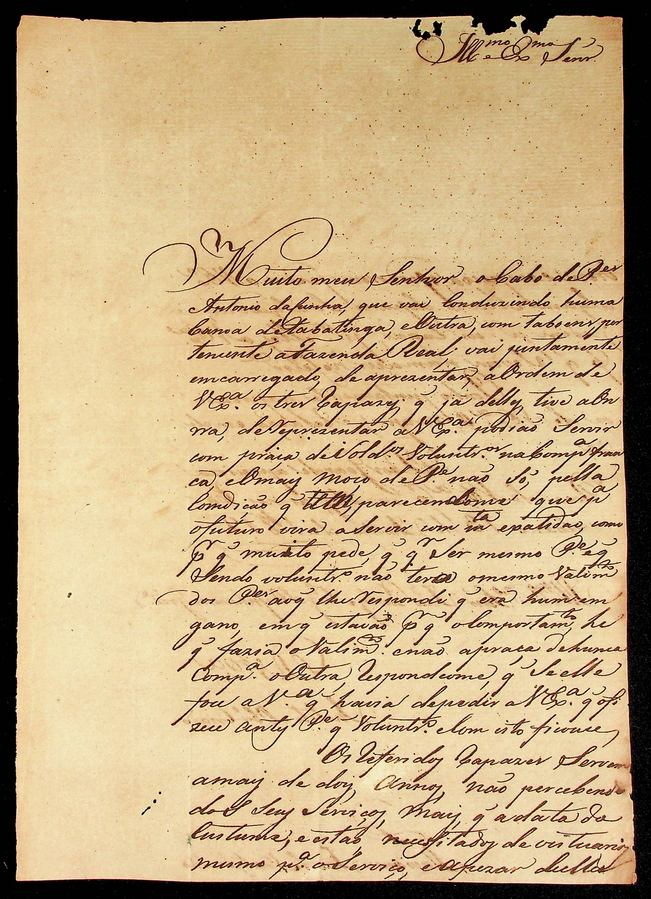 CARTA de Flaviano José de Matos Coelho ao [Governador e Capitão-General da Capitania de Mato Grosso] João Carlos Augusto d’Oeynhausen e Gravenberg.