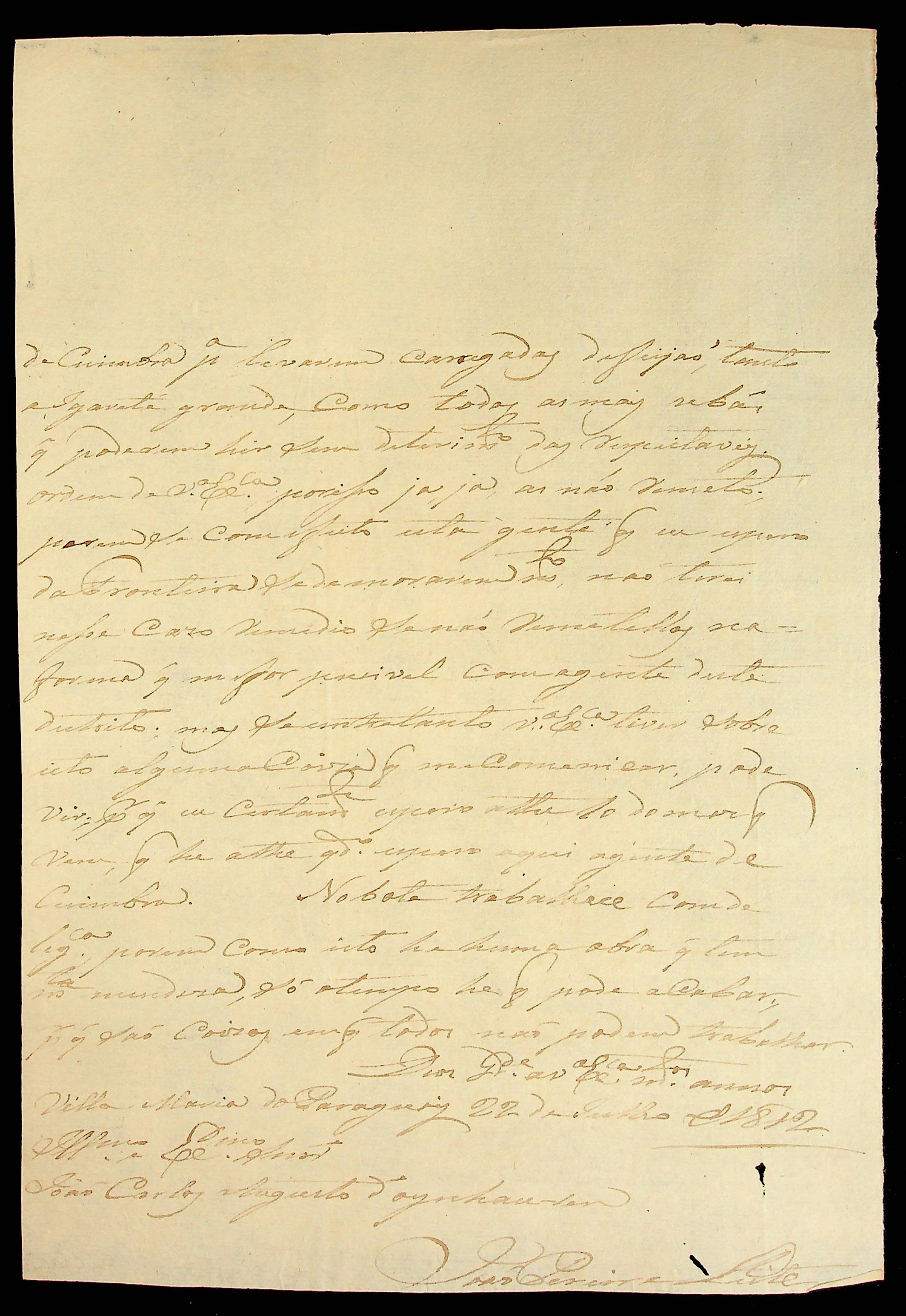 CARTA do Alferes e Comandante Vicente Marques de Oliveira ao [Governador e Capitão-General da Capitania de Mato Grosso] João Carlos Augusto d’Oeynhausen e Gravenberg.