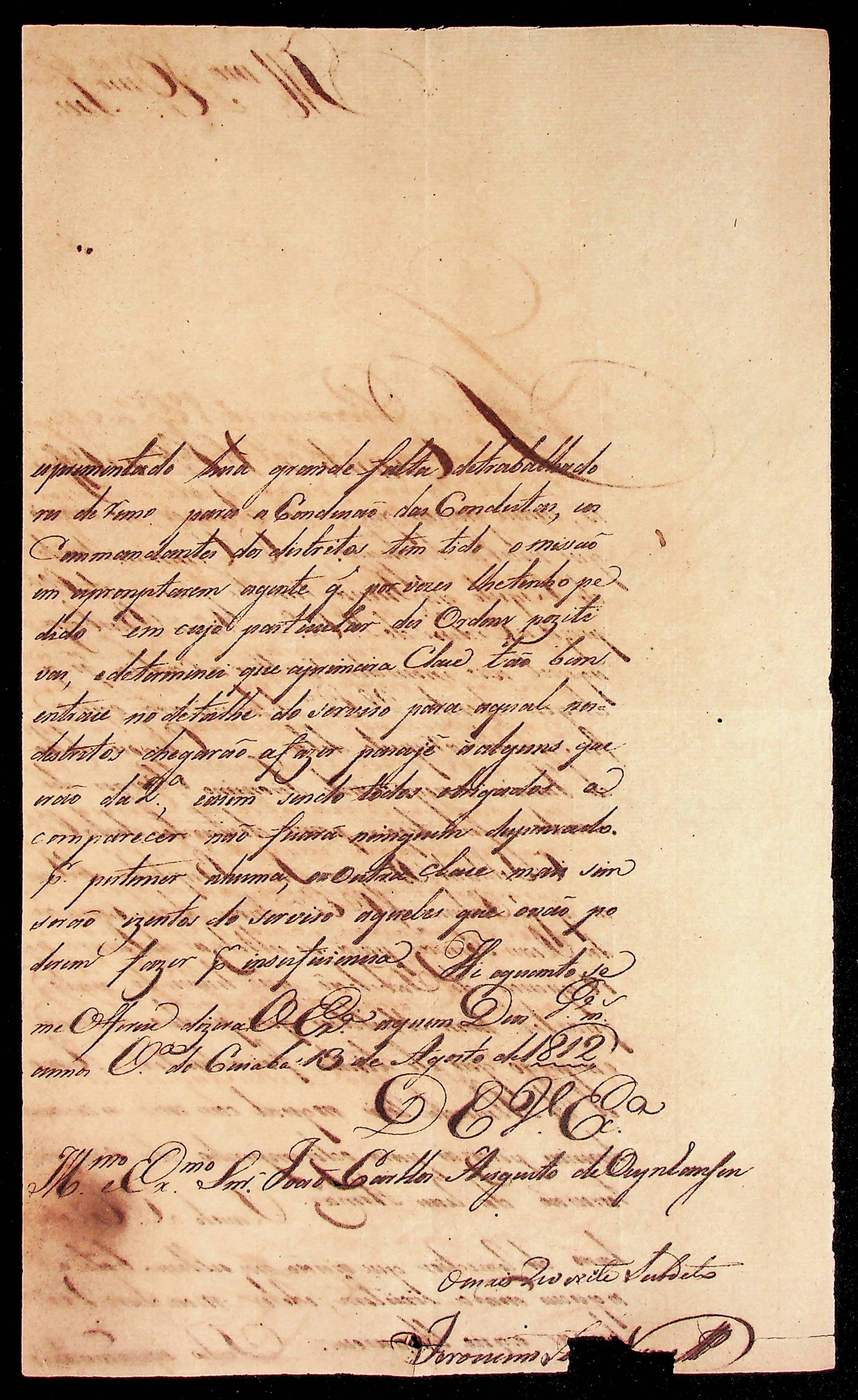 CARTA do [Sargento-mor] Jerônimo [Joaquim] [Nunes] ao [Governador e Capitão-General da Capitania de Mato Grosso] João Carlos Augusto d’Oeynhausen e Gravenberg.