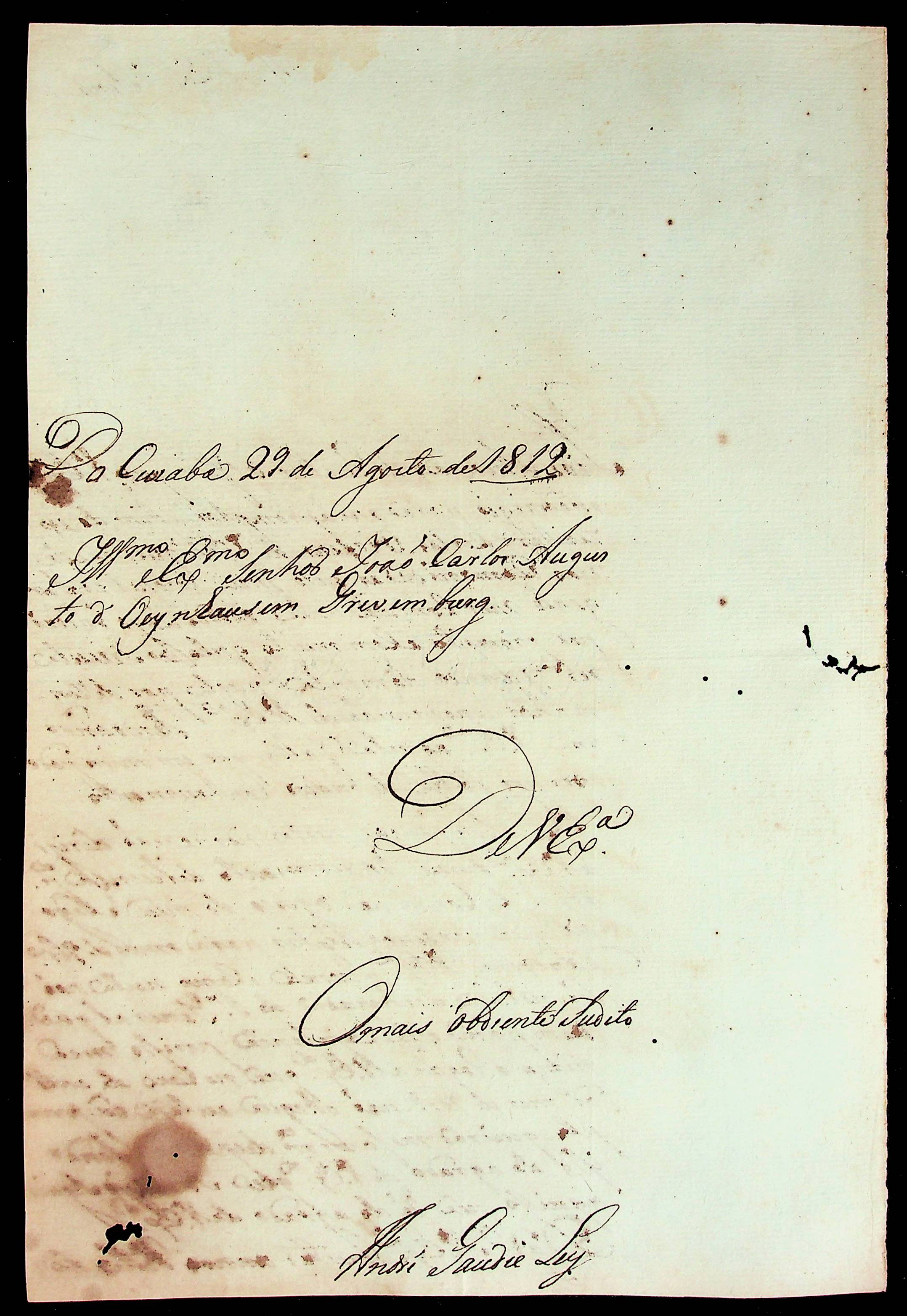 CARTA de André Gaudie Ley ao [Governador e Capitão-General da Capitania de Mato Grosso] João Carlos Augusto d’Oeynhausen e Gravenberg.