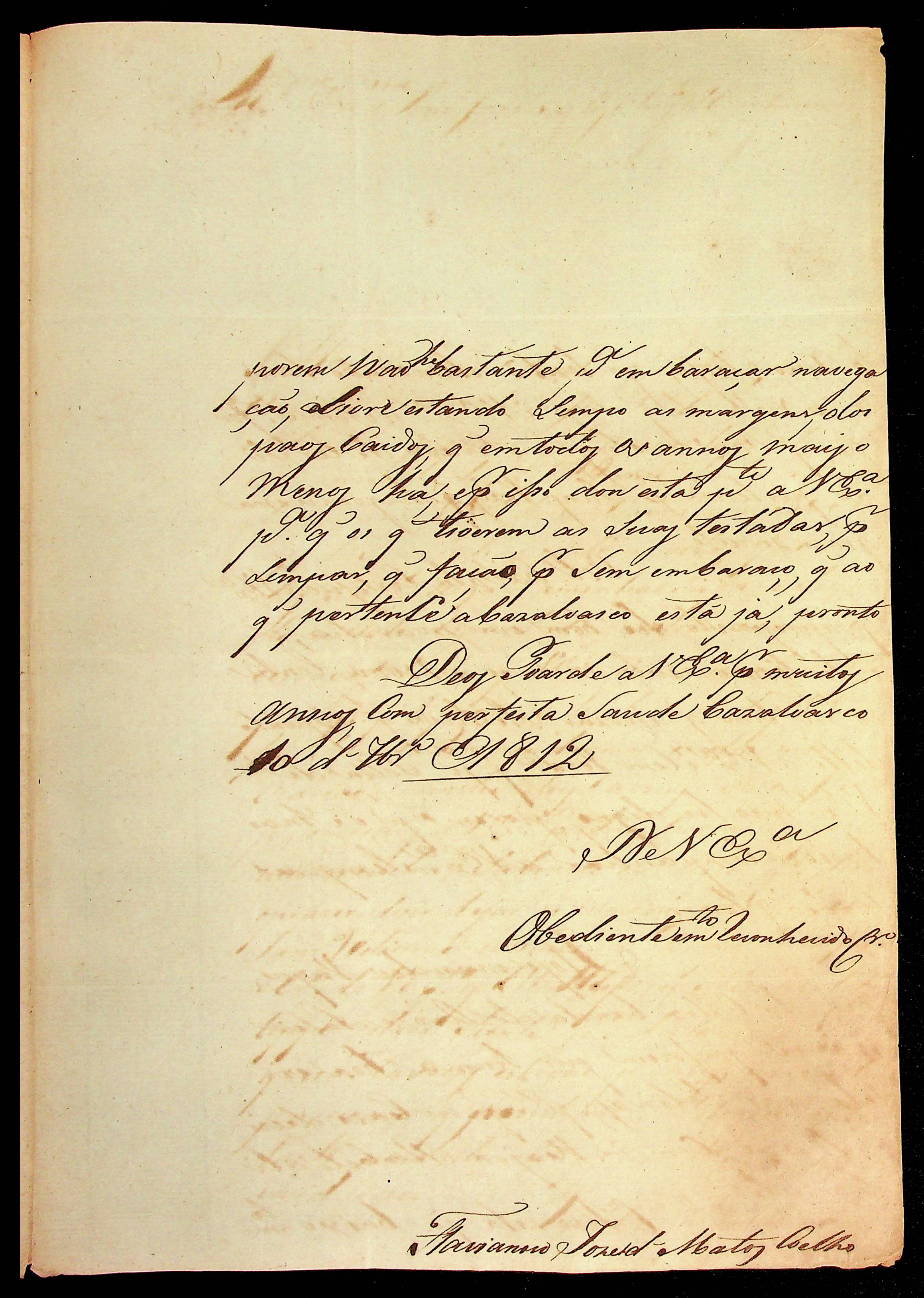CARTA de Flaviano José de Matos Coelho ao [Governador e Capitão-General da Capitania de Mato Grosso] João Carlos Augusto d’Oeynhausen e Gravenberg.