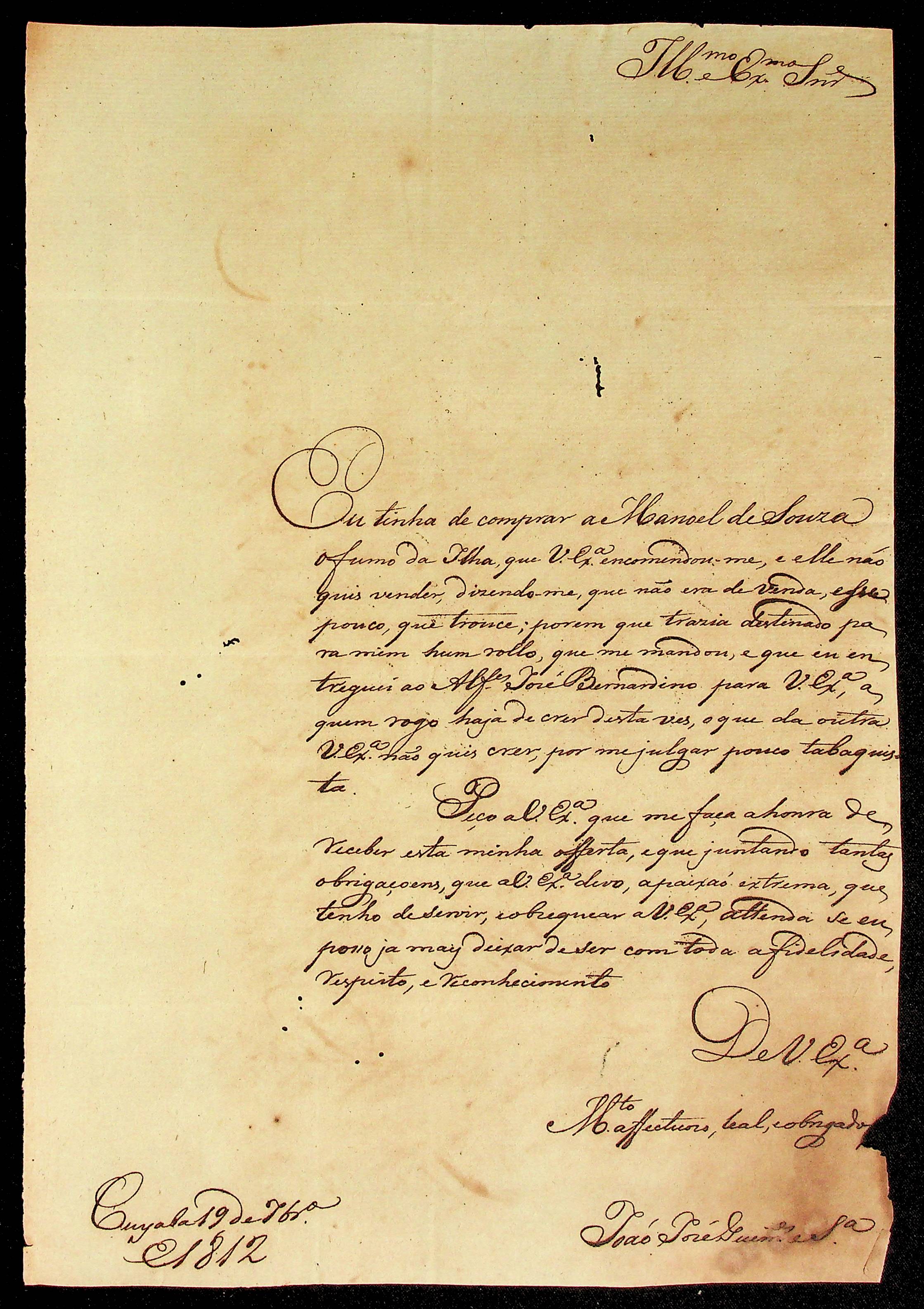 CARTA do Capitão João José Guimarães Silva ao [Governador e Capitão-General da Capitania de Mato Grosso João Carlos Augusto d’Oeynhausen e Gravenberg].