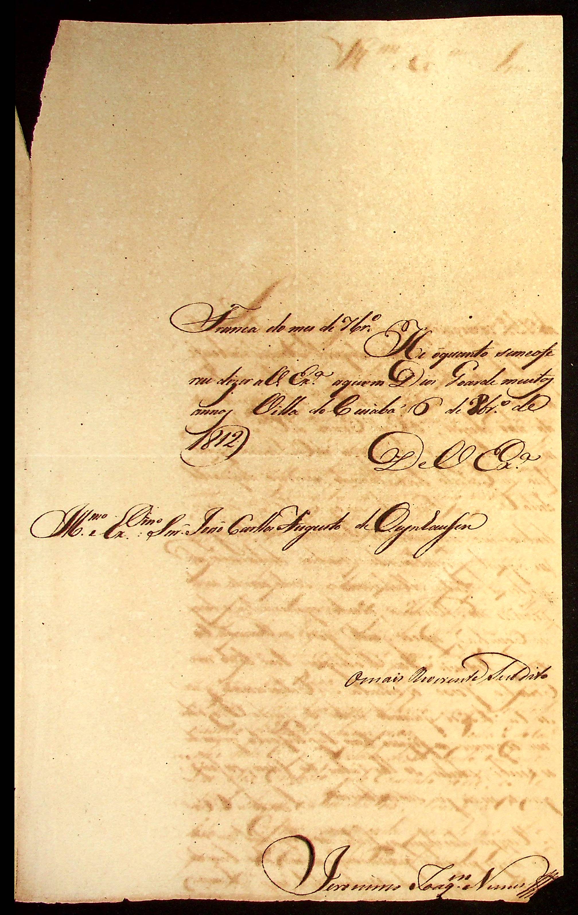 CARTA do [Sargento-mor] Jerônimo Joaquim Nunes ao [Governador e Capitão-General da Capitania de Mato Grosso] João Carlos Augusto d’Oeynhausen e Gravenberg.