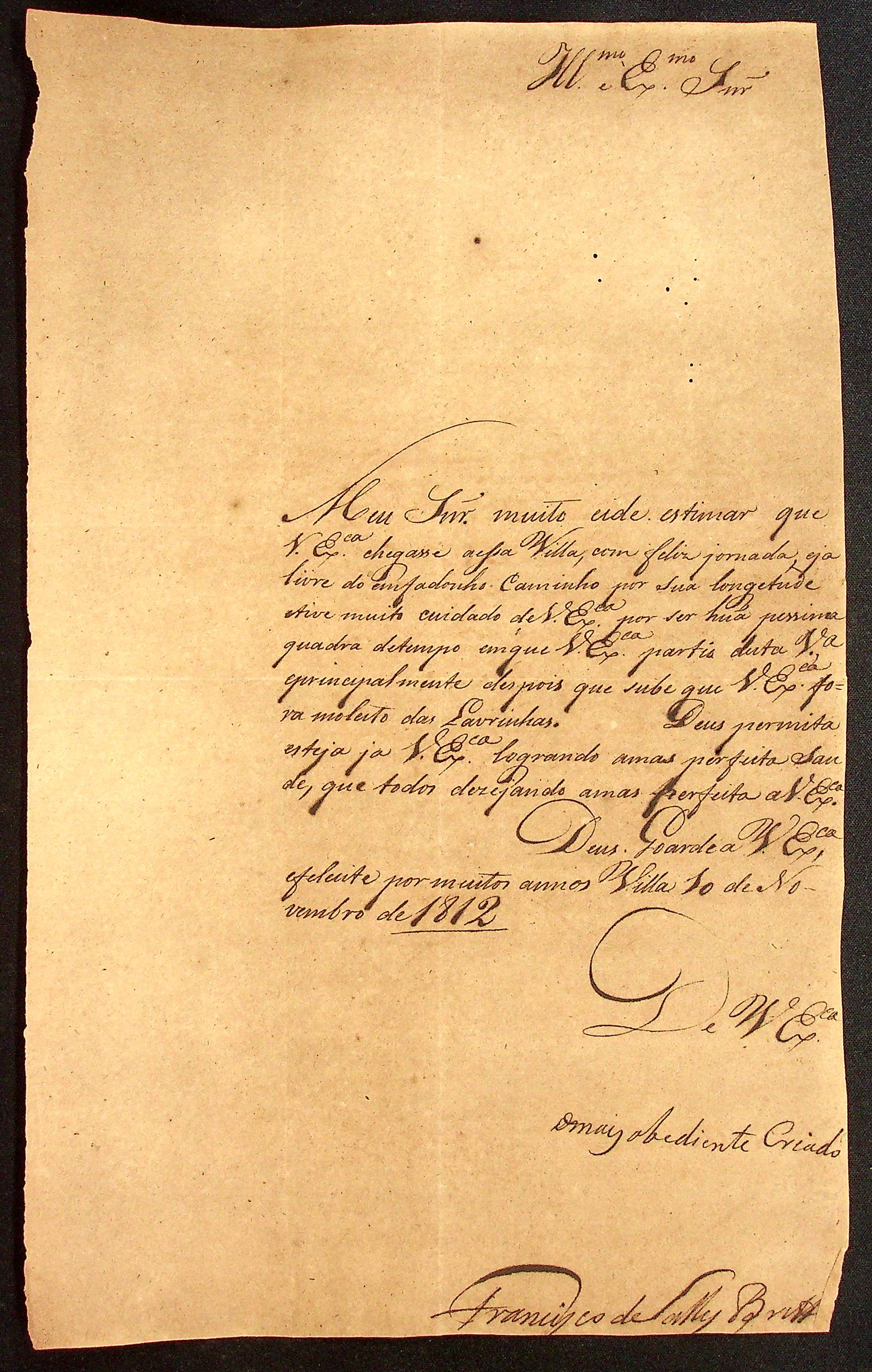 CARTA do [Capitão] Francisco de Salles Brito ao [Governador e Capitão-General da Capitania de Mato Grosso] João Carlos Augusto d’Oeynhausen e Gravenberg.