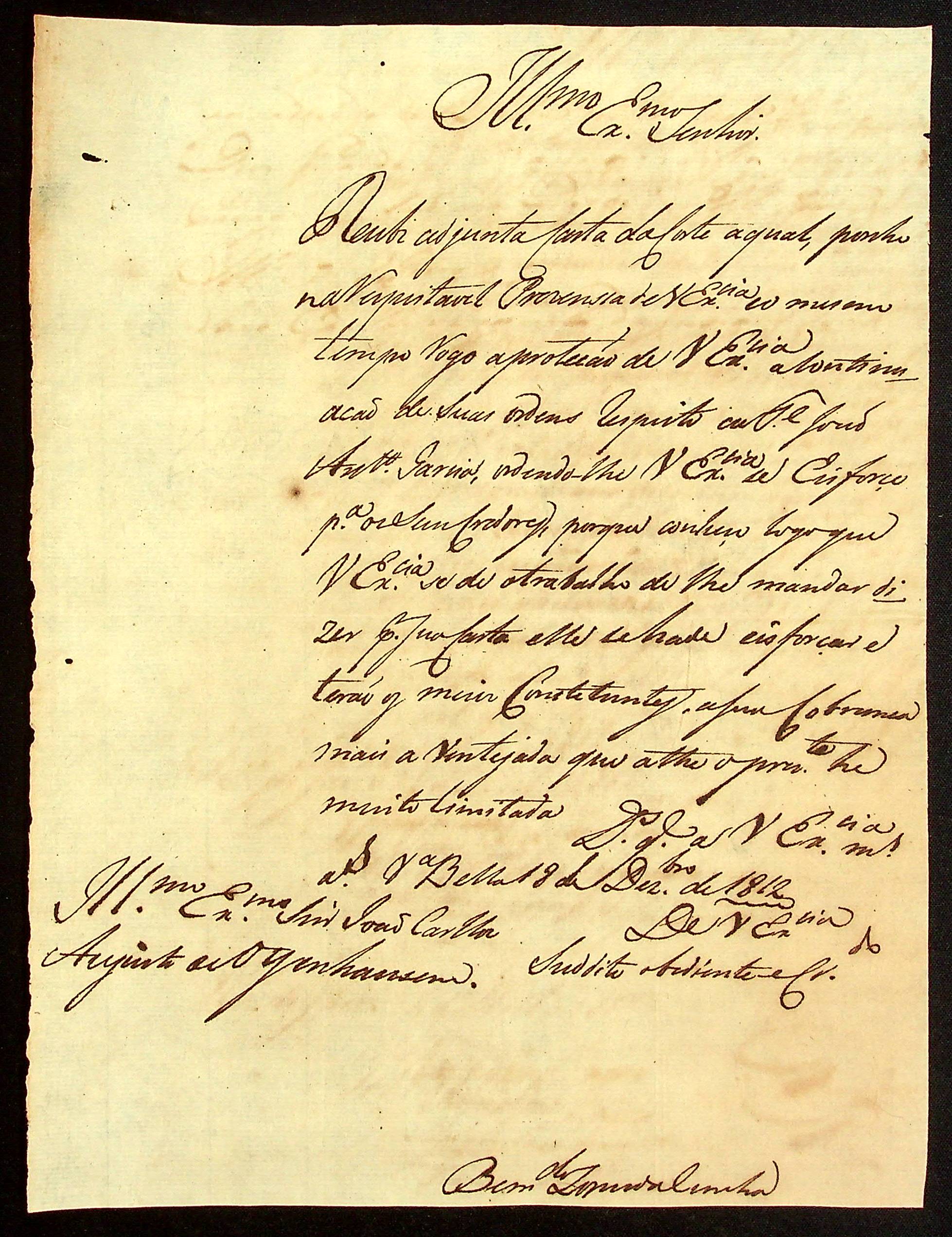 CARTA de Bernardo Lopes da Cunha ao [Governador e Capitão-General da Capitania de Mato Grosso] João Carlos Augusto d’Oeynhausen e Gravenberg.