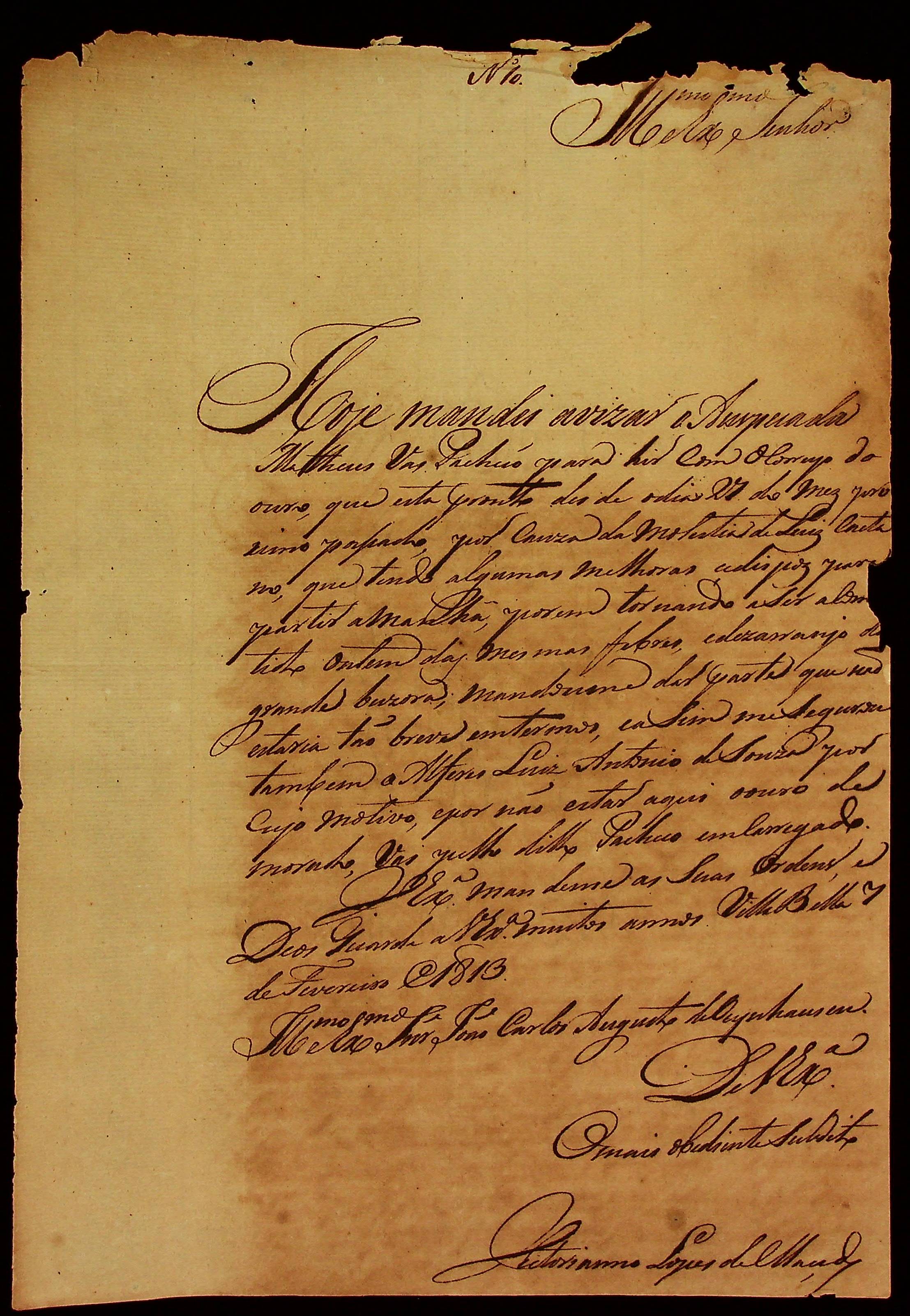 CARTA do [Comandante] Vitoriano Lopes de Macedo ao [Governador e Capitão-General da Capitania de Mato Grosso] João Carlos Augusto d’Oeynhausen e Gravenberg.