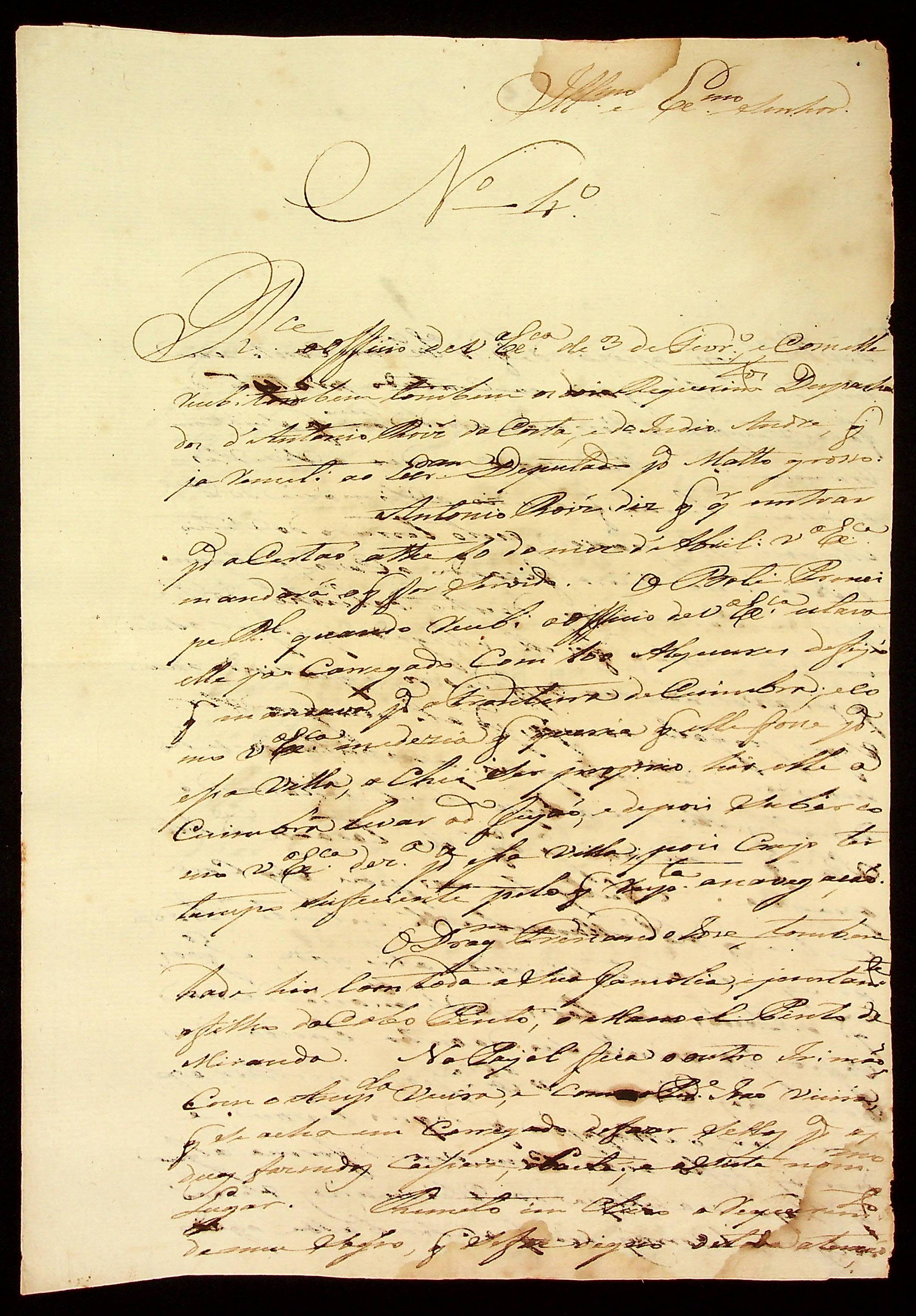 CARTA de João Pereira Leite ao [Governador e Capitão-General da Capitania de Mato Grosso] João Carlos Augusto d’Oeynhausen e Gravenberg.