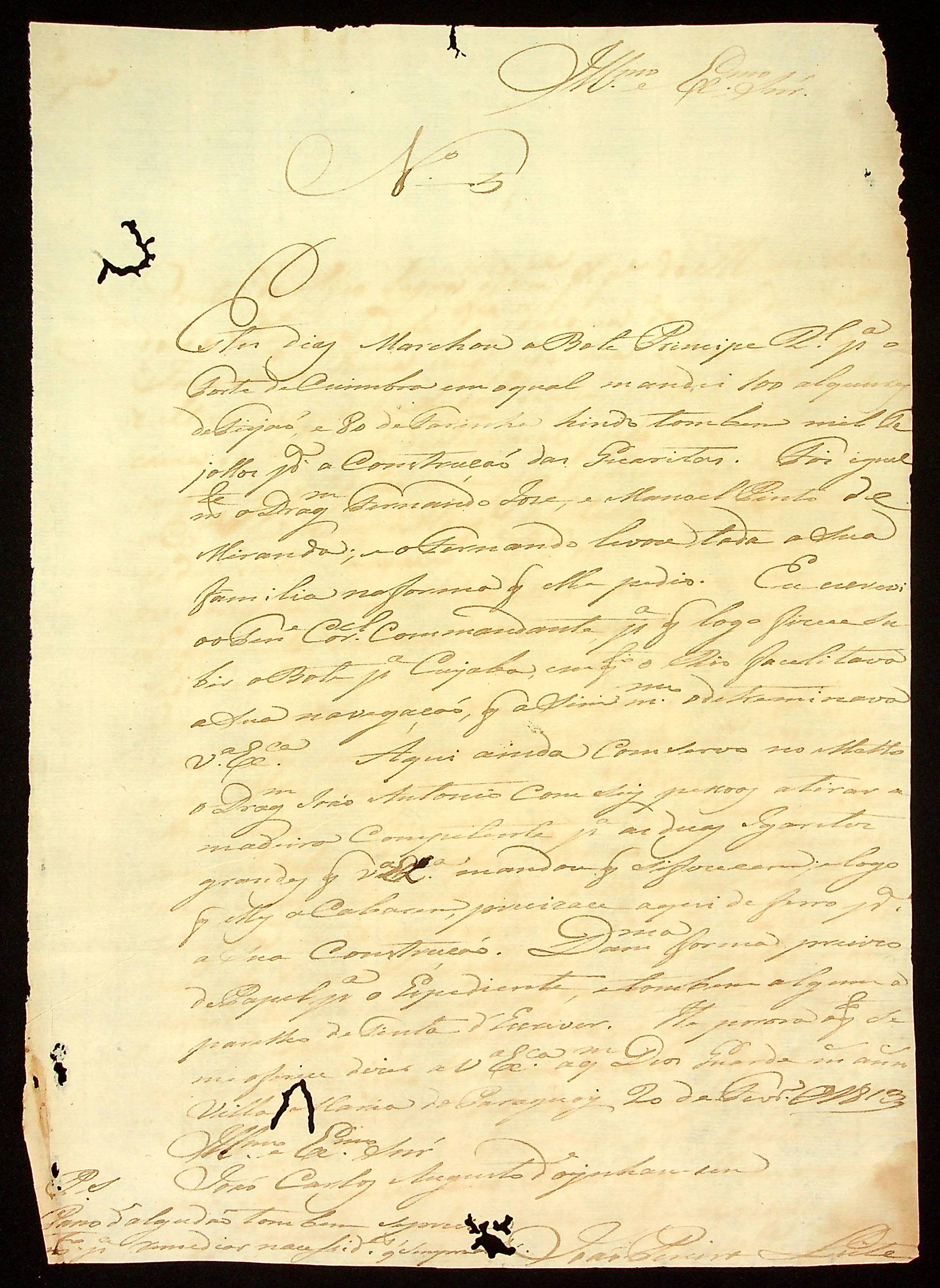 CARTA de João Pereira Leite ao [Governador e Capitão-General da Capitania de Mato Grosso] João Carlos Augusto d’Oeynhausen e Gravenberg.