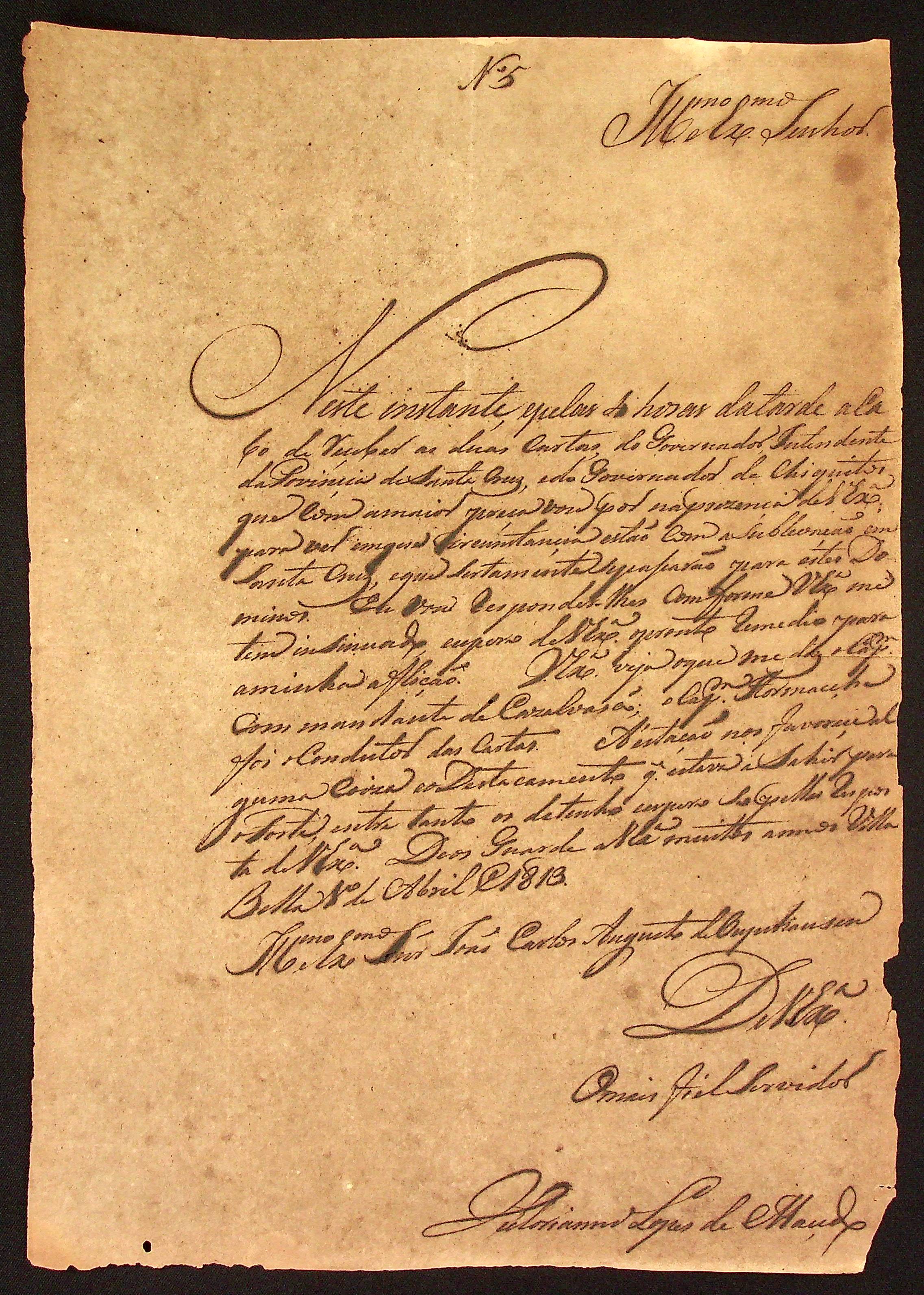 CARTA do [Comandante] Vitoriano Lopes de Macedo ao [Governador e Capitão-General da Capitania de Mato Grosso] João Carlos Augusto d’Oeynhausen e Gravenberg.