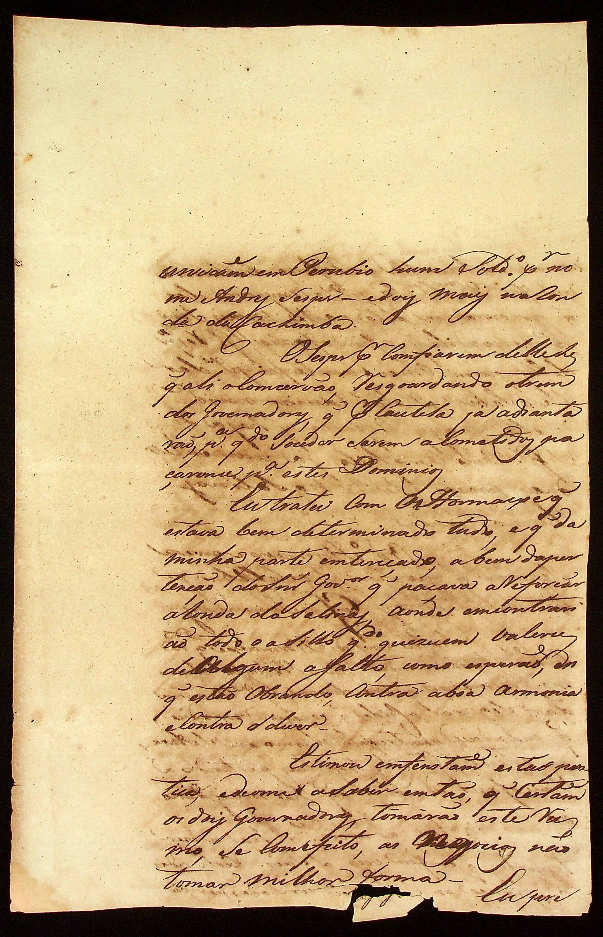 CARTA do [Comandante] Flaviano José de Matos Coelho ao [Governador e Capitão-General da Capitania de Mato Grosso] João Carlos Augusto d’Oeynhausen e Gravenberg.