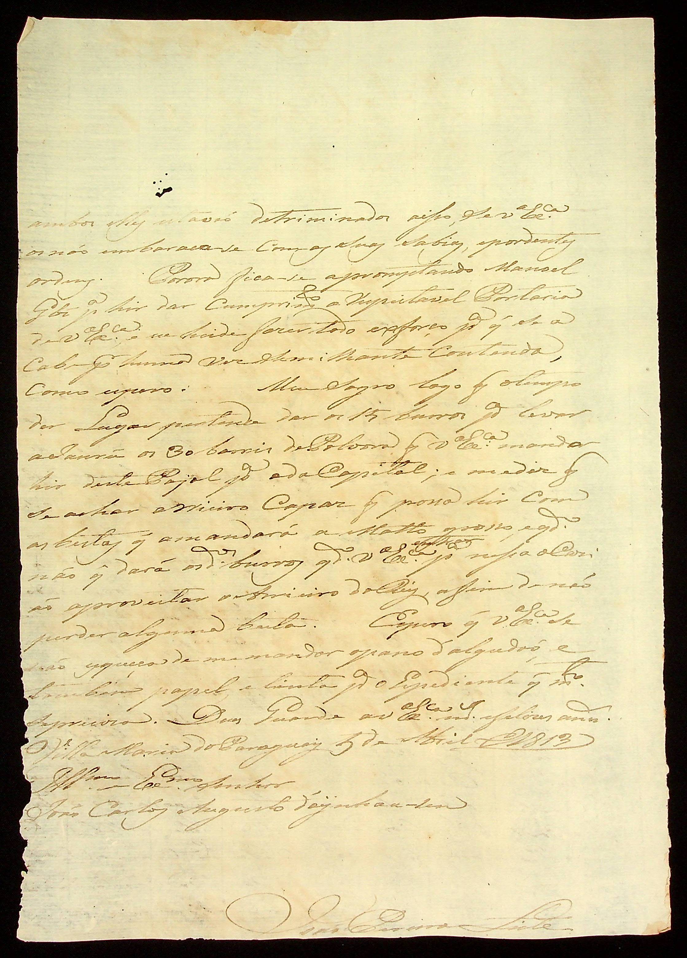 CARTA de João Pereira Leite ao [Governador e Capitão-General da Capitania de Mato Grosso] João Carlos Augusto d’Oeynhausen e Gravenberg.