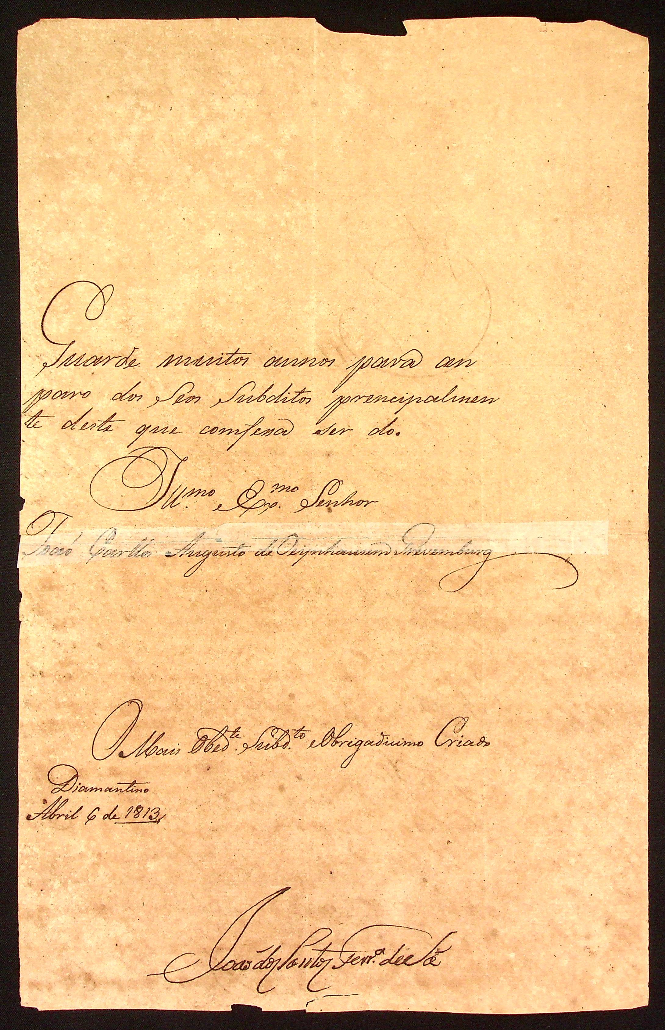 CARTA de João dos Santos Ferreira de Sá ao [Governador e Capitão-General da Capitania de Mato Grosso] João Carlos Augusto d’Oeynhausen e Gravenberg.